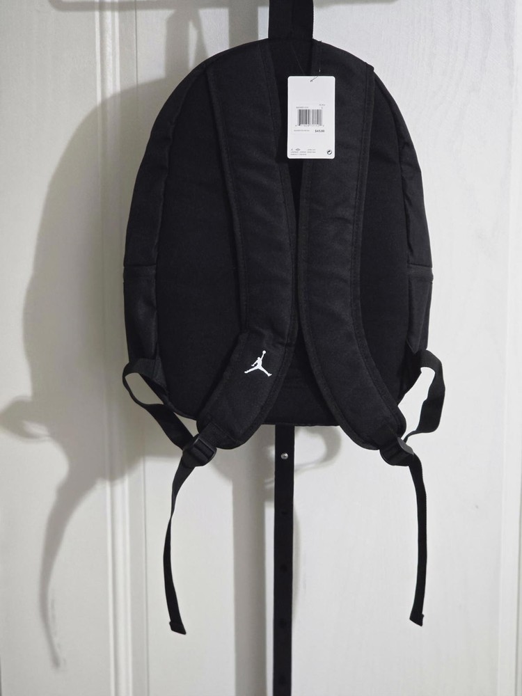 Brand New with tags. Nike Air Jordan Classic Black Backpack Red Jumpman logo. Offically licensed Air Jordan backpack in sleek black featuring the iconic red jumpman logo. Durable, stylish, and spacious, this backpack includes a padded laptop sleeve inside, roomy front zip pocket, and adjustable padded straps for all-day comfort.