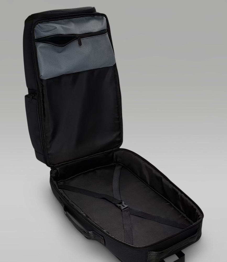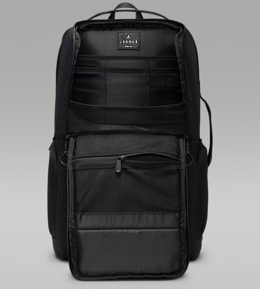 Country/Region of Manufacture:JordanDepartment:MenBag Width:12 inBrand:JordanStyle:BackpackColor:BlackMaterial:PolyesterBag Height:20 inModel:Nike Air Jordan MA0944-023Bag Depth:8 inSize:Large
