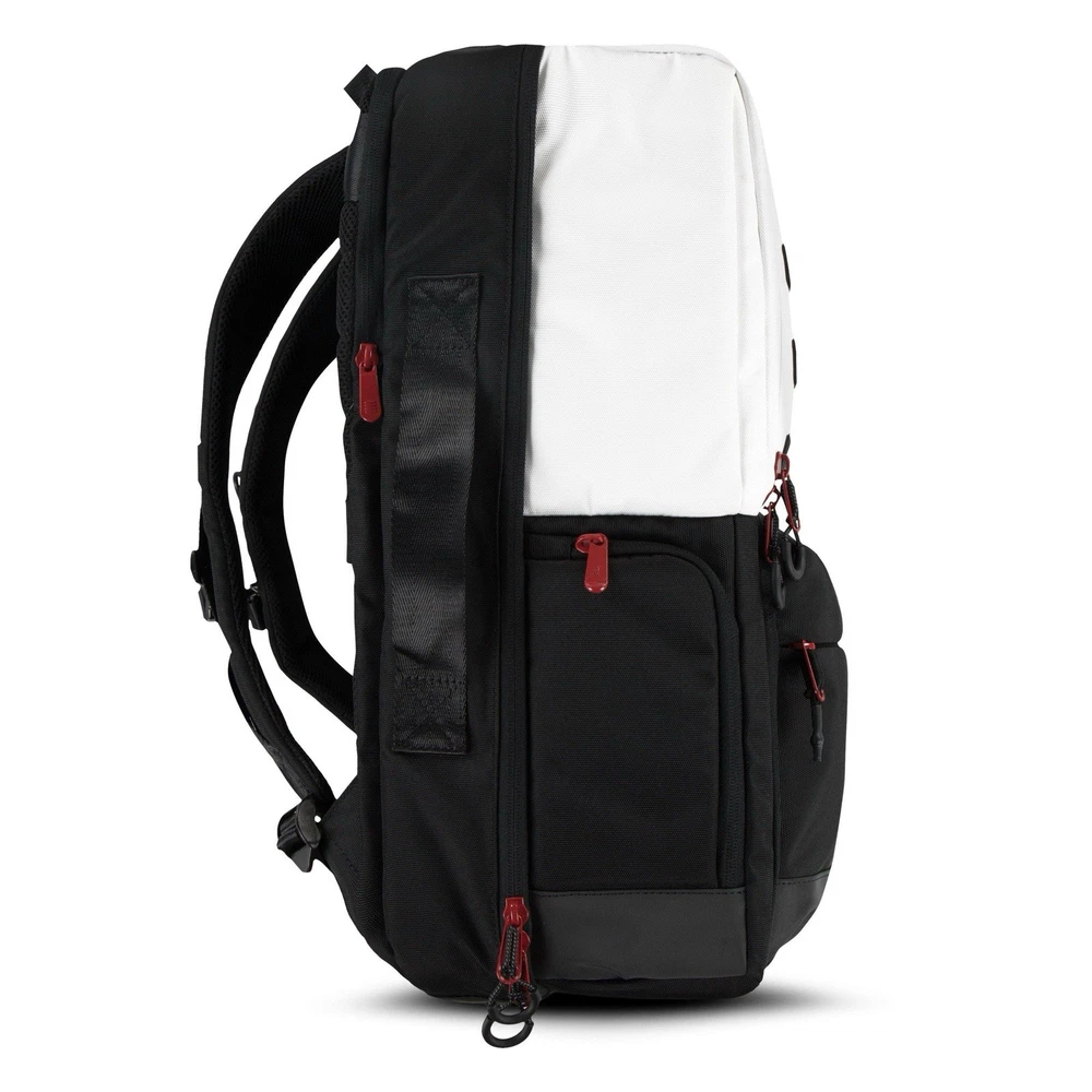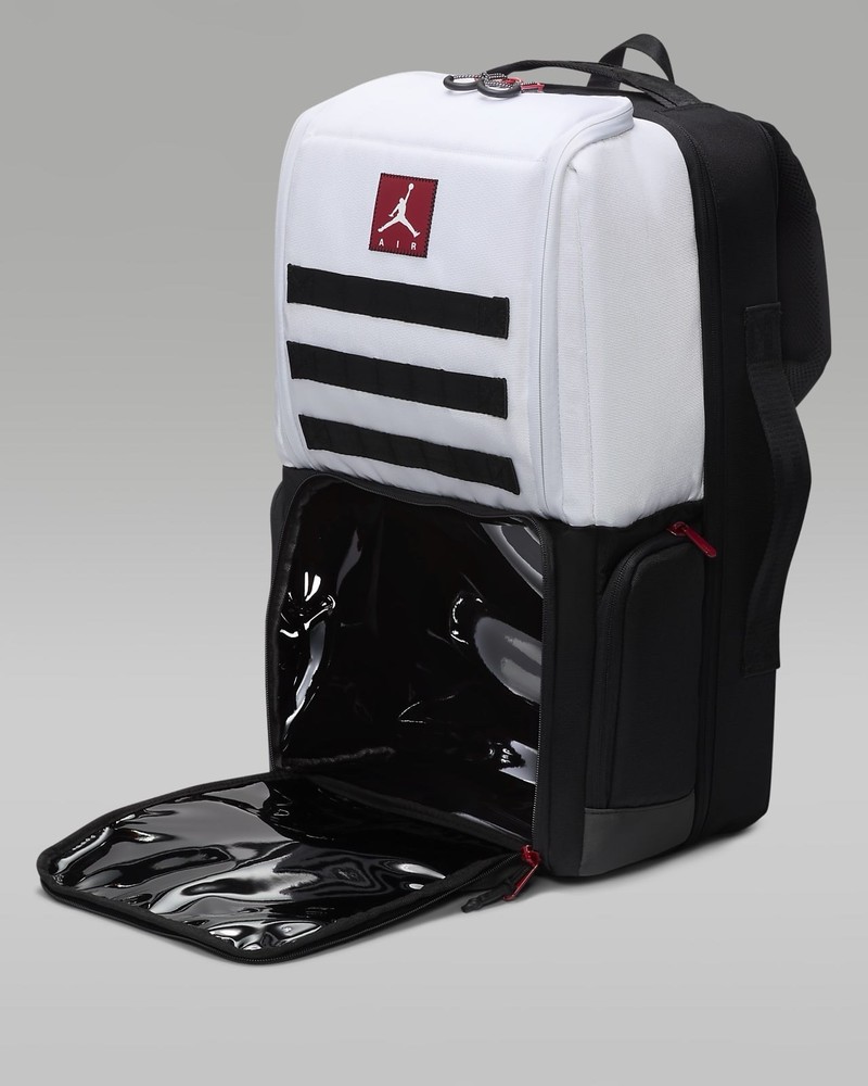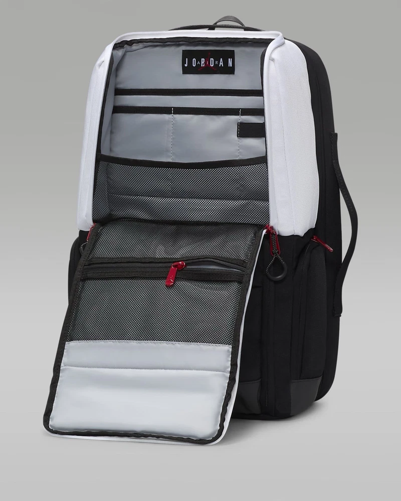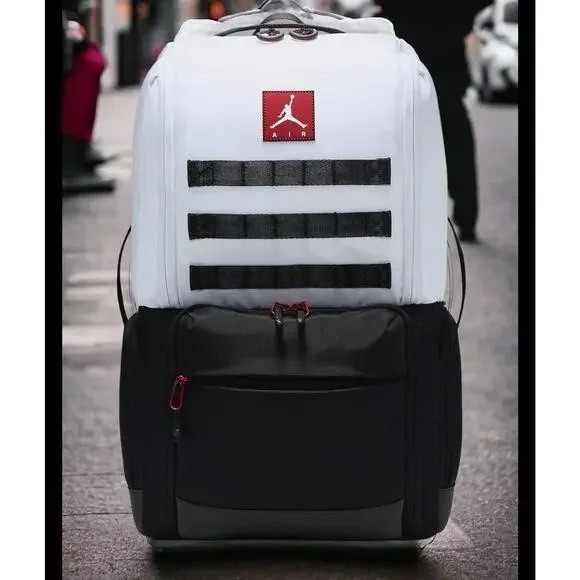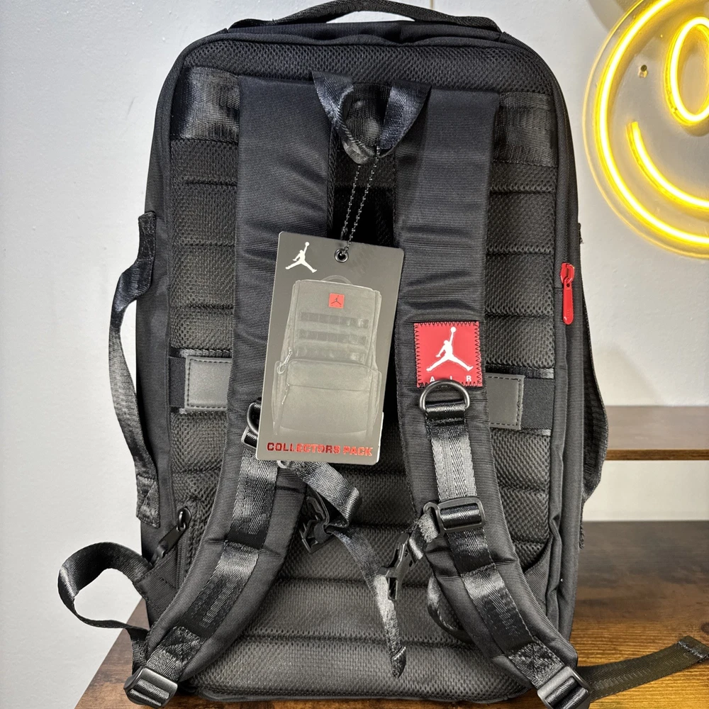 The Nike Air Jordan Collectors Backpack is a stylish and functional bag designed for travel. Featuring a zip closure, shoulder strap handle style, and a size of 31.5L, this backpack is perfect for carrying your essentials in style. The canvas fabric type and solid color design make it a versatile option for any outfit, while the organizer features add functionality for on-the-go use. With a nod to the 80s, 90s, Retro, and Sports themes, this Air Jordan backpack is a must-have for any sneaker enthusiast or collector.