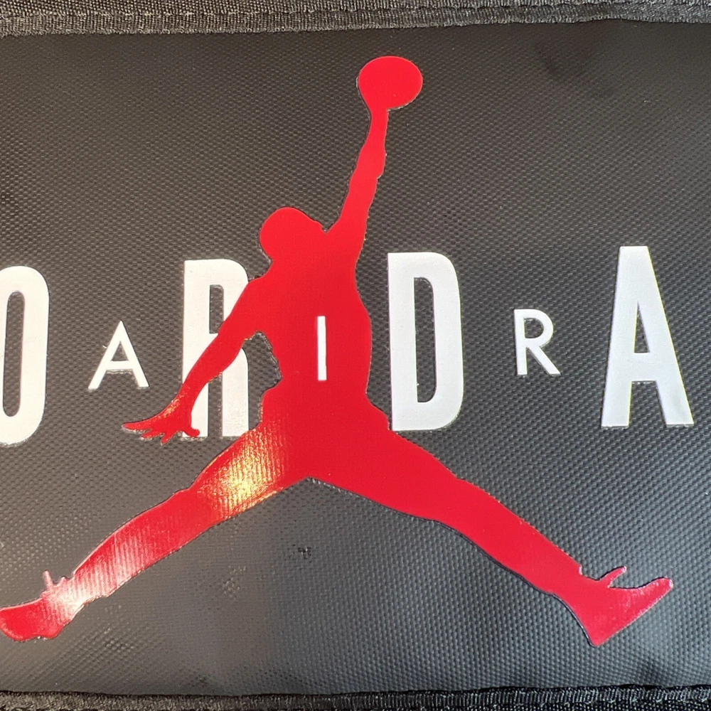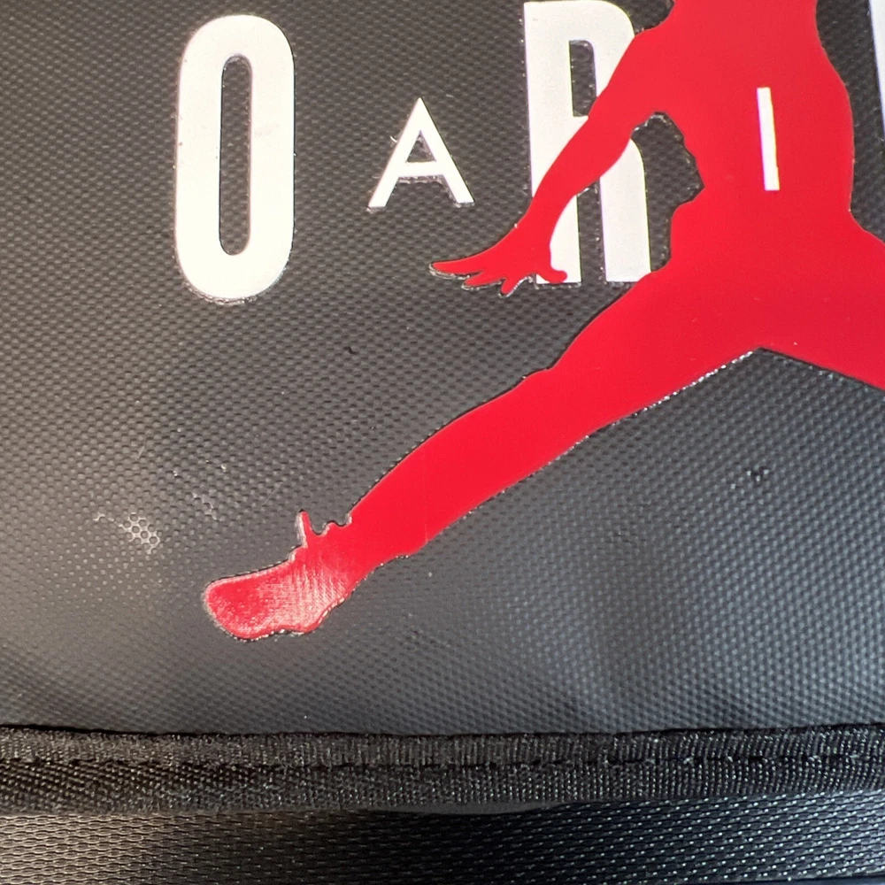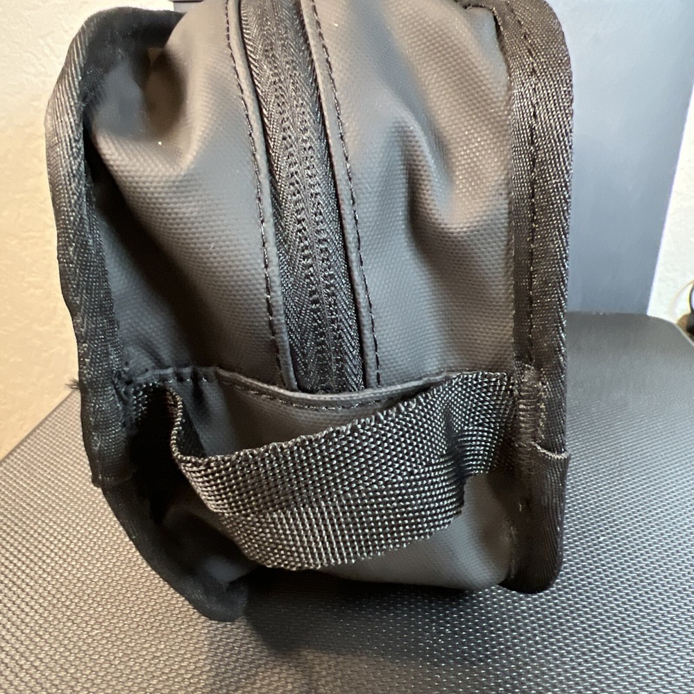 The Nike Air Jordan Men's Travel Dopp Kit Clutch Toiletries Bag in Black/White is a small polyester bag designed for travel, casual, or business use. Featuring a zip closure, top handle, and a zip-around design, this clutch-style bag is ideal for storing toiletries and other small essentials. Small blemishes on front, see photos.