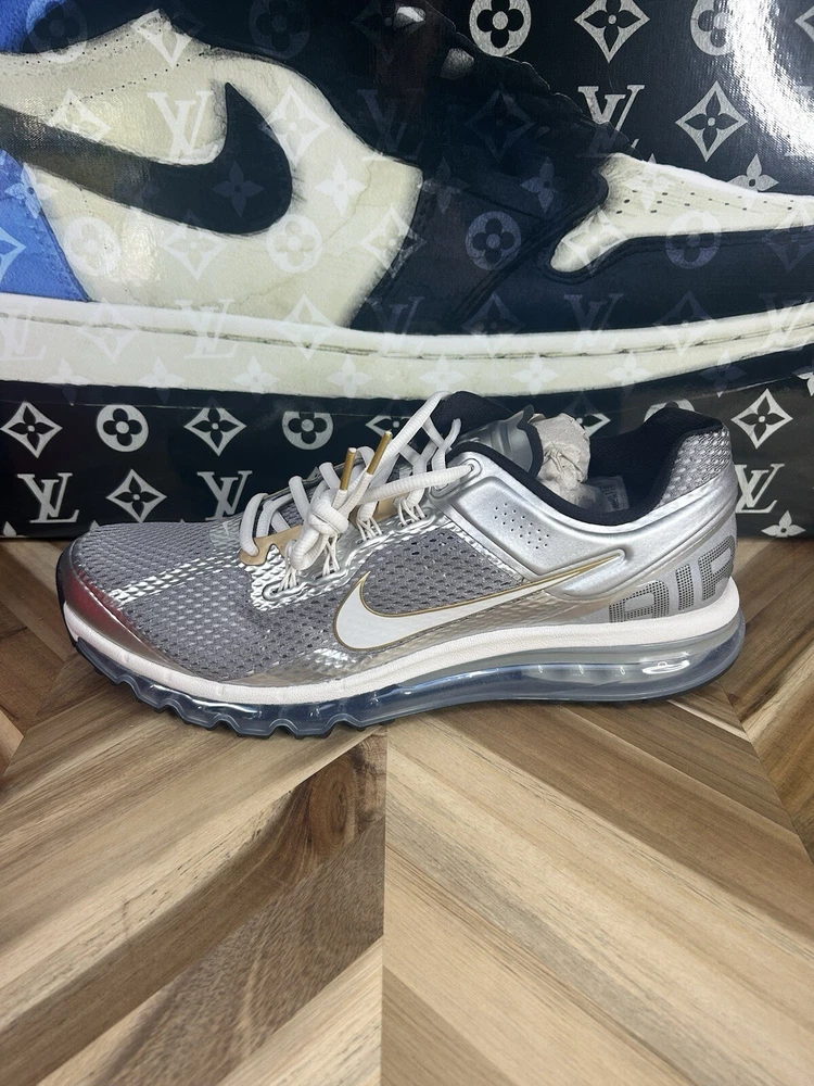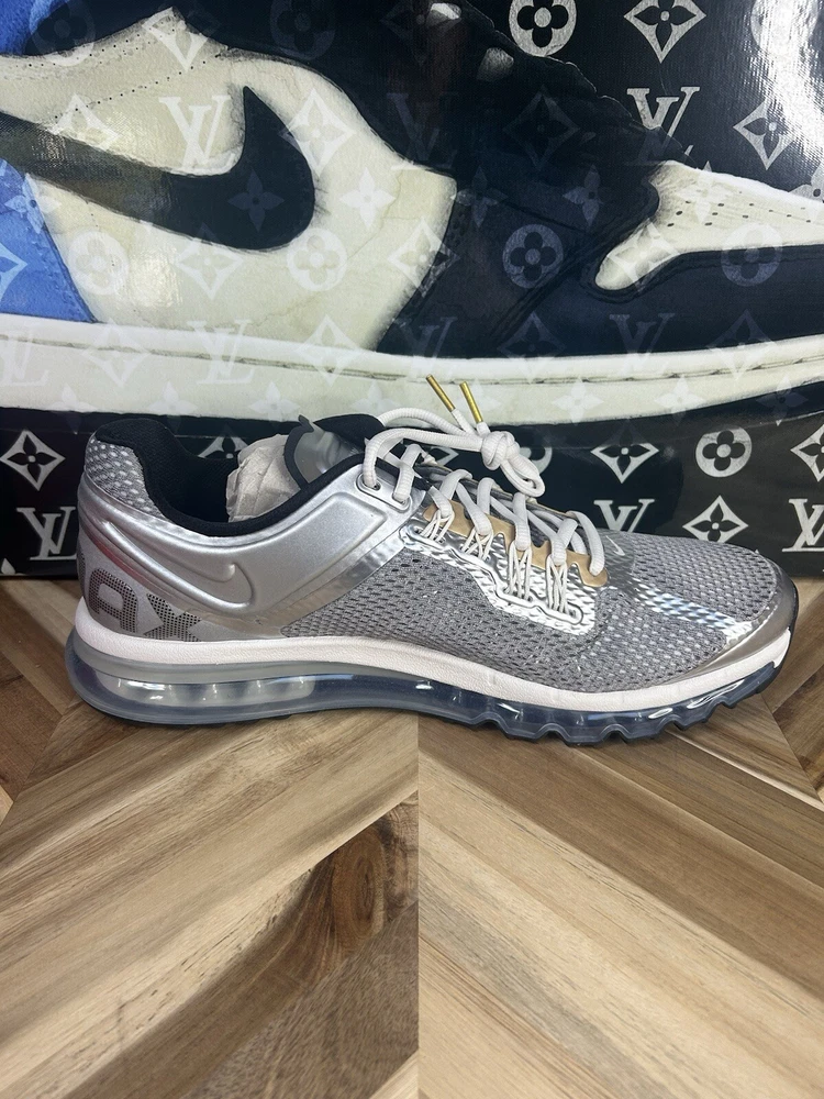 Elevate your sneaker game with these Nike Air Max 2013 Men's shoes. With a limited edition design and silver metallic finish, these sneakers are perfect for any fashion-forward man. The lace-up closure and low-top shaft style ensure a comfortable and secure fit, while the rubber outsole provides excellent traction for various activities such as gym training, track and field, walking, and even dancing. Featuring the iconic Nike Air Max product line, these shoes have a rich history and are perfect for any fan of the brand. The shoes have a USA and 80s/90s theme, making them a great addition to any collection. Don't miss out on the chance to own these amazing sneakers.