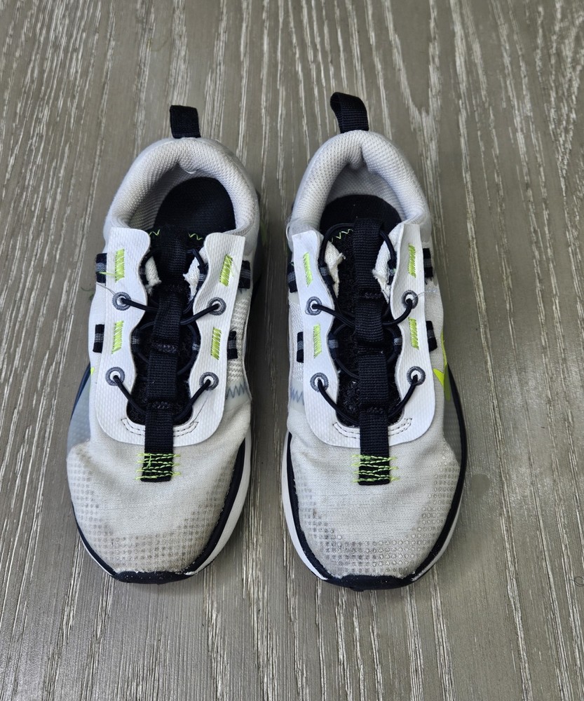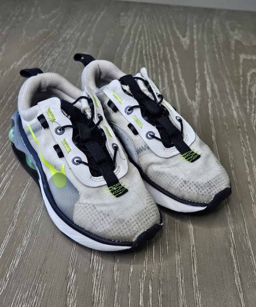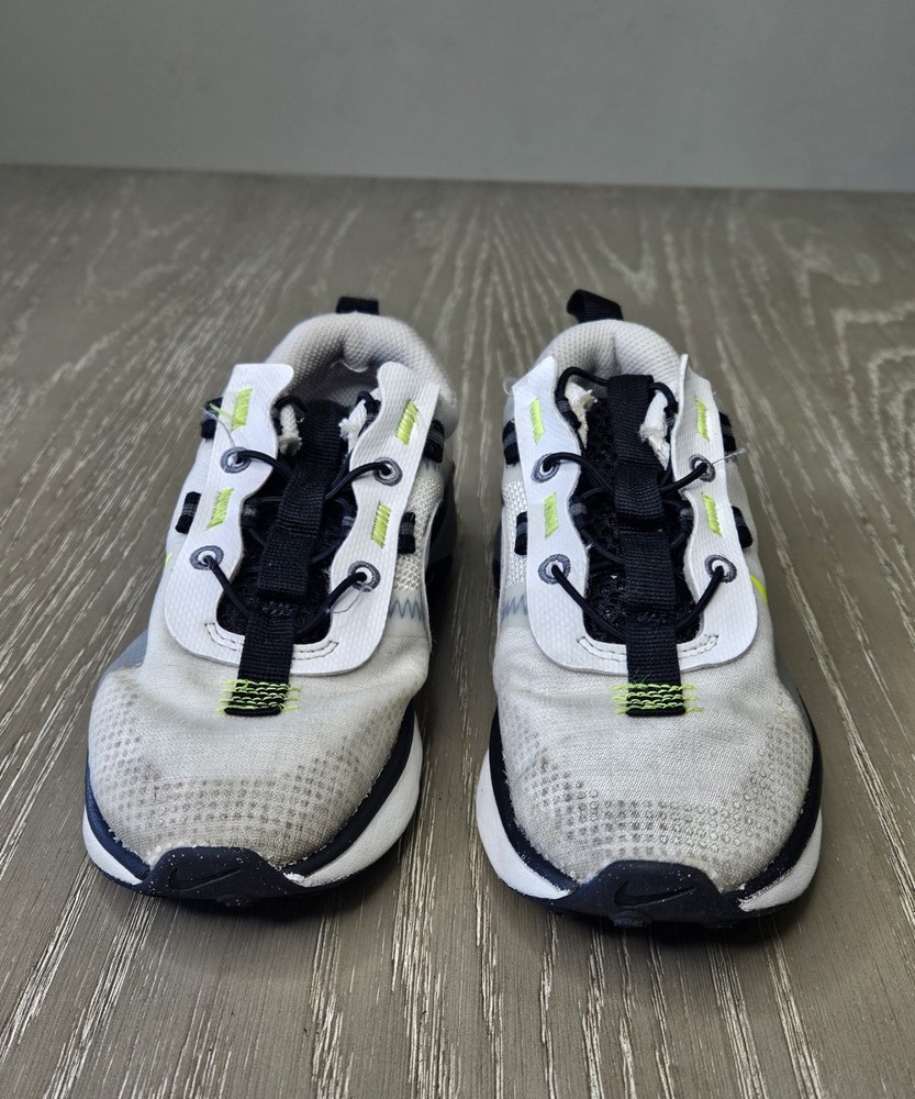 Pre-owned in good condition. The Nike Air Max 2021 Shoes in size 13C are a stylish and comfortable choice for active kids. Featuring a solid black color with accents of white and green, these low top sneakers have a lace-up closure for a secure fit. Made with synthetic upper material and designed for running and jogging, these athletic shoes are part of the Nike Air Max product line, known for their quality and performance. Perfect for both activewear and casual occasions, these sneakers are a colorful and trendy addition to any kid's wardrobe.