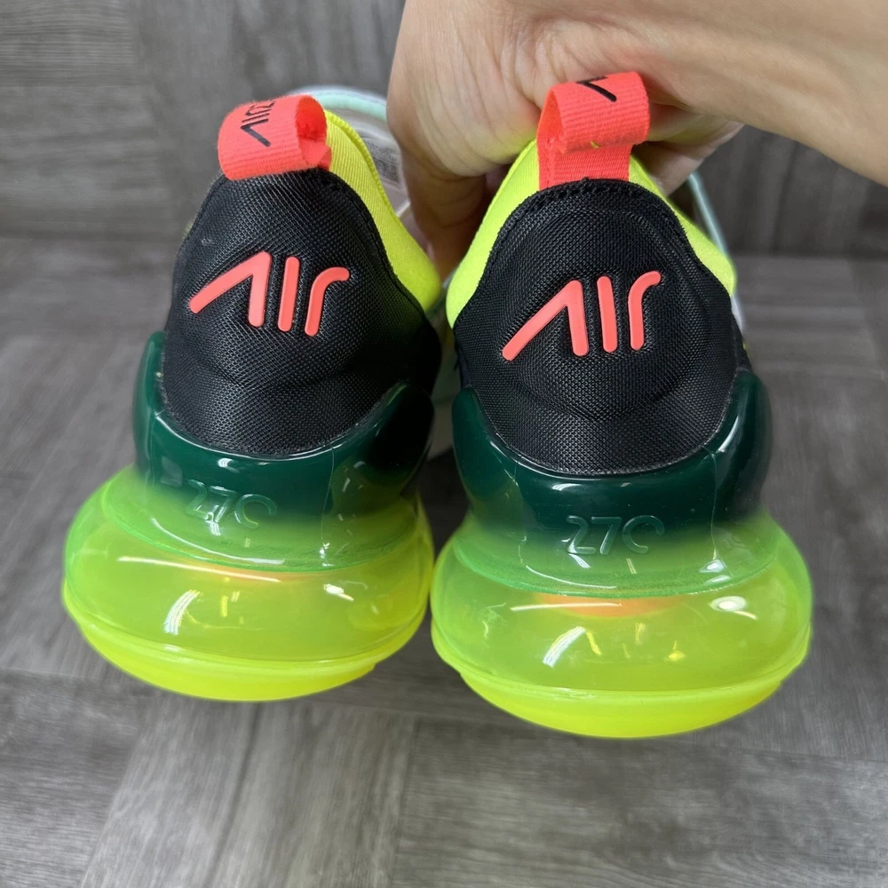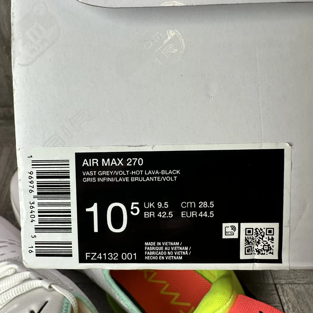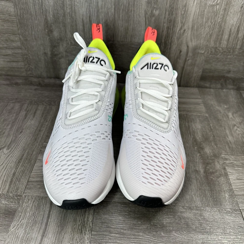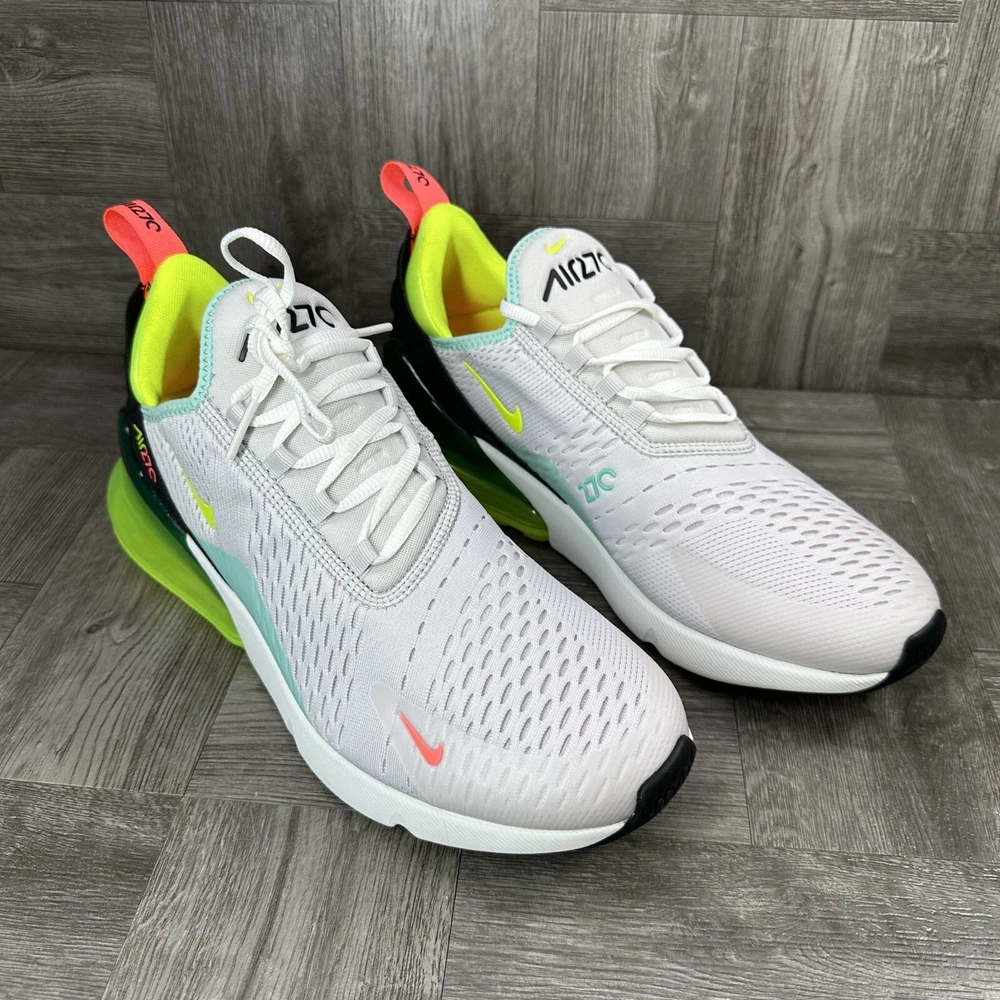 Elevate your athletic experience with the Nike Air Max 270, model FZ4132-001, a top-tier choice for men seeking both style and performance. The sleek white colorway, paired with vibrant volt accents, offers a versatile look that can power through your workout sessions or complement your casual outings. The breathable mesh upper and foam insole materials ensure comfort and support, while the durable rubber cleats provide excellent traction. Available in US size 10.5 and equivalent sizes for the UK (9.5) and EU (44.5), these sneakers are designed for a snug, yet comfortable fit with a standard shoe width. Crafted in Vietnam, the shoe's solid pattern and low-top shaft style make it a modern addition to any ensemble, reflecting Nike's commitment to innovation and design in every detail.