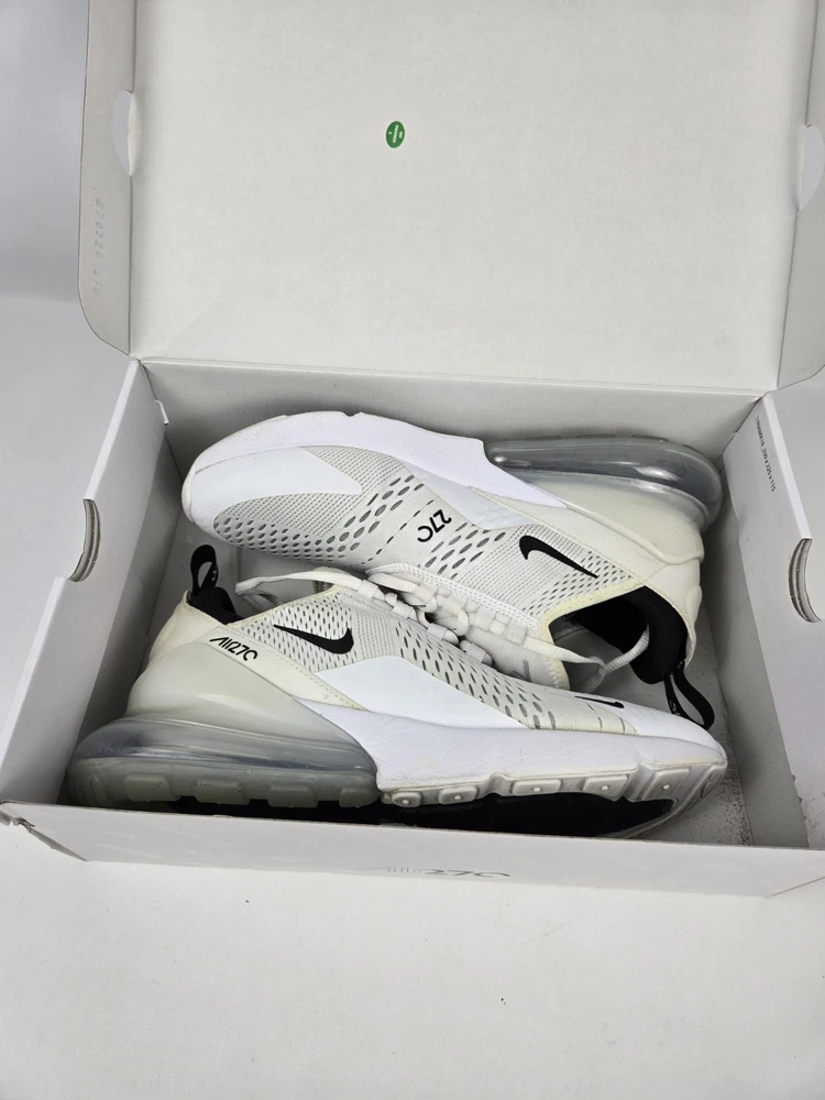 These sneakers are pre-owned , so please see all the pictures for any imperfections and flaws. They do come with a box, which has damage. Again in the pictures. If you should have further questions, please do not hesitate to contact me. Thanks 2B