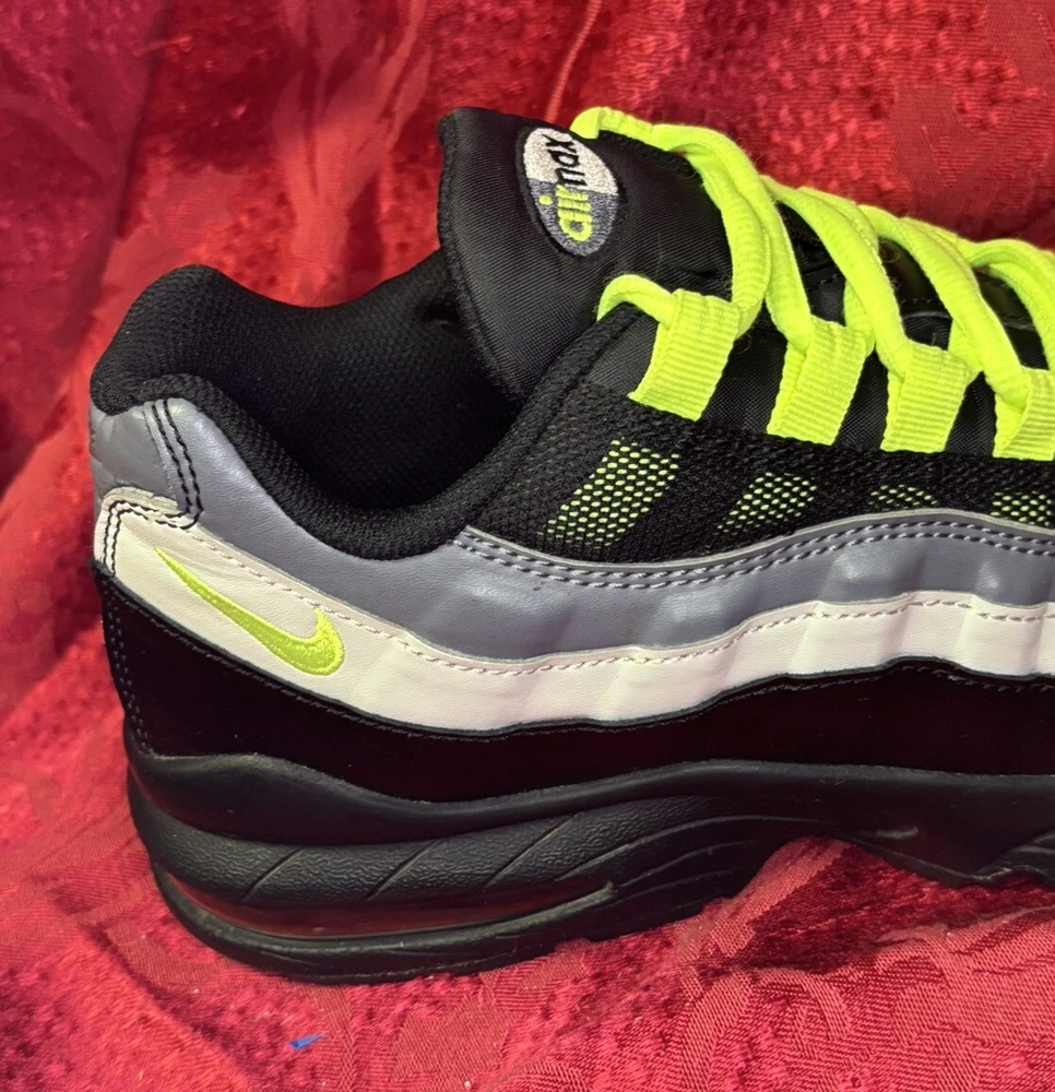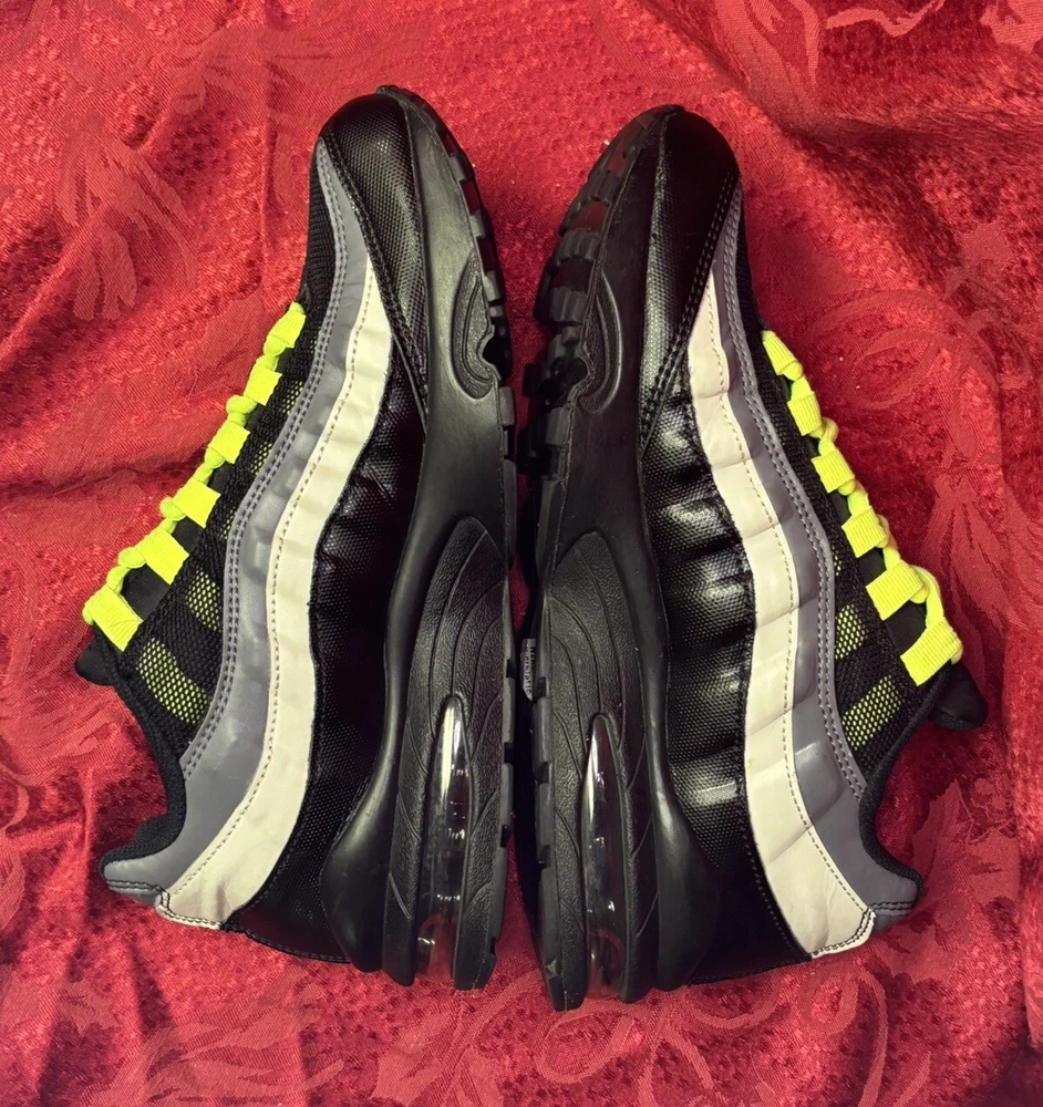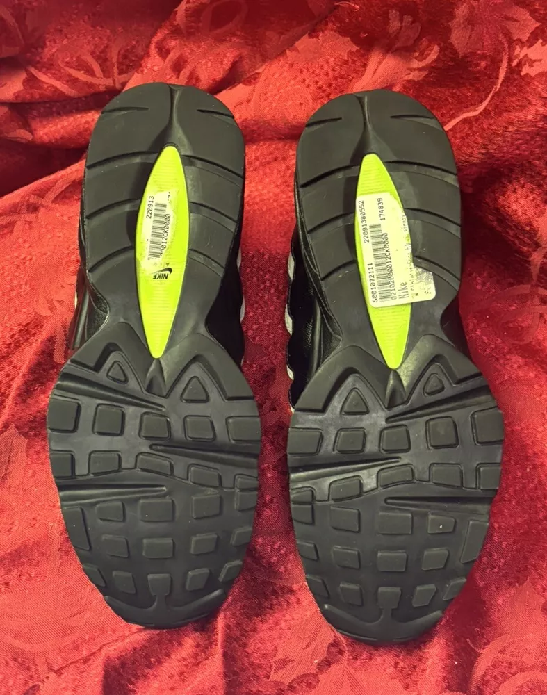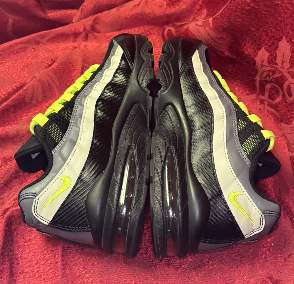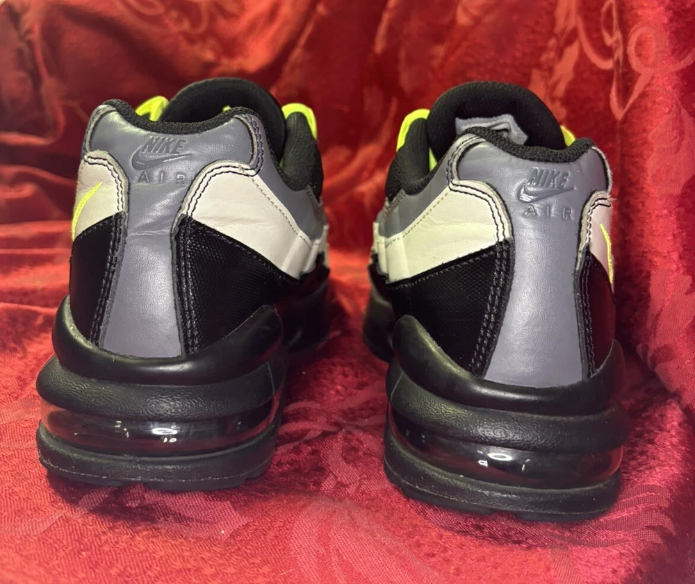 The sneakers in the pictures are the exact pair the buyer will receive. They are listed as New Other because the box was discarded and the store label is still on the bottom of the sole as you will see in the pictures. Please check out the pics and if you have questions please ask. Product Description: Nike Air Max 95 GS Black Volt & Dark Gray Sneakers Shoes, Style 905348-022, Size 7Y Product Information: A Shoe That Equals Fashion! There isn't a shoe more notable in style than the Nike Grade School (GS) Air Max 95. These kicks feature wavy lines that're bold and eye-catching, offering a modern and urban look. Not only do the unique lines draw your eyes to these Nikes, but the classic-yet-subtle Nike Swoosh also ensures instant brand recognition. The blend of materials adds to the complexity of appearance, while the waffle-patterned outsole creates a classic sneaker look. From a casual day at the park to a presentation during class, these shoes offer confidence, inspiration, and design for all. Nike Provides True Comfort A shoe is far more than a fashion statement, it is also a vehicle of support and comfort for the active kid. These Nikes offer everything you’d expect from the modern sneaker. With breathable uppers, these shoes keep feet comfortable throughout the day, and Air Sole units provide ultimate support and cushioning in every step. Durable materials across the shoe ensure that the Air Max 95 holds up to everyday wear. Find out why Nike is an iconic name for young and old when you snag a pair of Nike Air Max 95s for your grade schooler. Nike Grade School Air Max 95 features: Blend of synthetic leather, mesh, suede, and leather creates a supportive upper. Durable polyurethane midsoles paired with Air Sole® units for springy support. Strong BRS 1000® carbon rubber outsoles use waffle pattern for excellent footing.