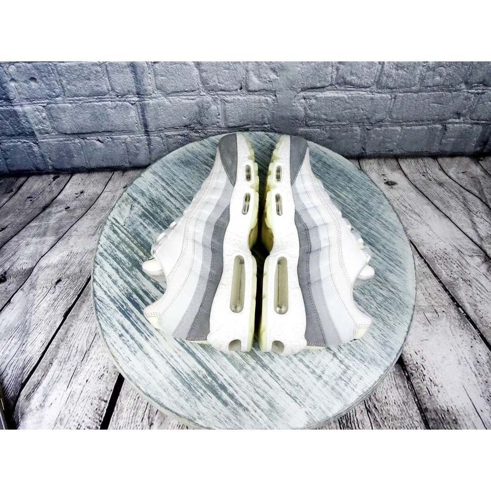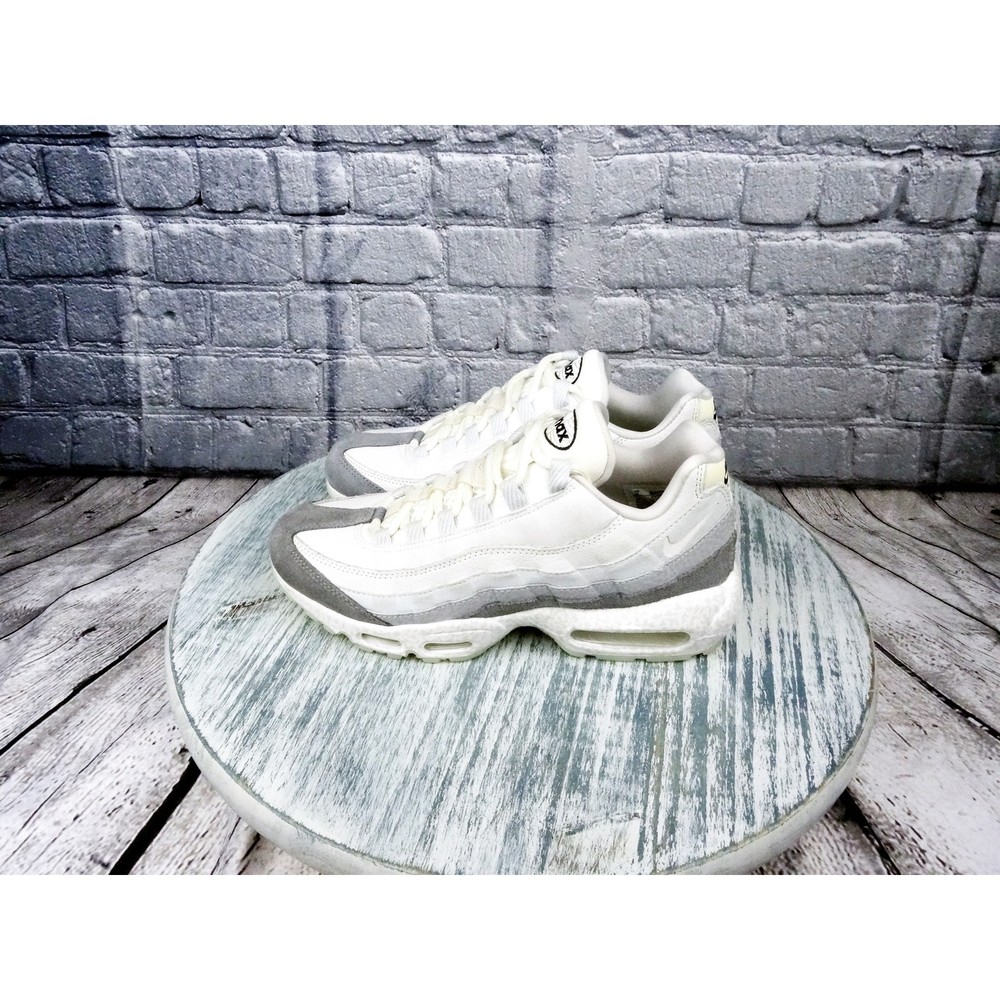 Nike Air Max 95 "Light Bone" QS Summit White/Light Bone Men 8/Women 9.5 NIB Damaged box. Has imperfection (Toe Box on L shoe is darker than the right) Comes with one pair of shoe laces (white only) In very good condition. Clean, no tears/no damage Will ship within 2-3 business days of purchase.