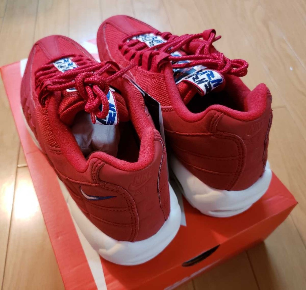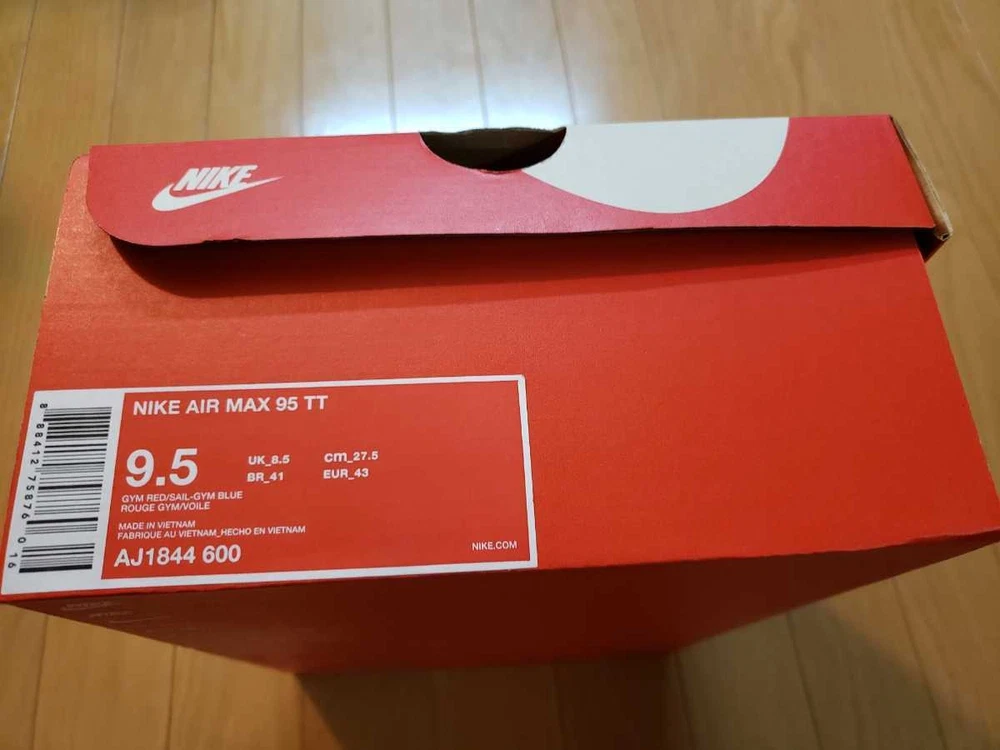 US Shoe Size:9.5Product Line:Nike Air MaxBrand:NikeColor:RedType:AthleticRelease Year:2018Release Date:20180402Nickname:Gym RedModel:Nike Air Max 95Style Code:AJ1844-600Manufacturer Color:Gym Red/Gym Blue-SailDepartment:MenStyle:SneakerFull Model:Nike Air Max 95 TT Pull Tab