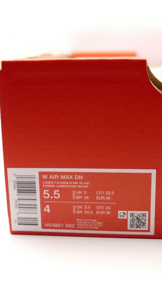 Bargain Clearance! Brand: Nike Model: Nike Air Max DN Colour: Laser Fuchsia / Pink Blast Department: Women Size: UK 3 US women’s size: 5.5 EU size: 36 CM: 22.5 Style code: HV4861 602 🧾 Condition: New with box without lid 📦 Upper: Multi-layer breathable mesh and synthetic upper in bright pink tones for a bold, modern look 👟 Details: Dynamic Air DN design with sculpted sidewalls, padded collar and mini Swoosh branding Midsole: Full-length Dynamic Air system with dual-tube air unit for responsive cushioning and all-day comfort Outsole: Durable rubber outsole with traction pattern for everyday wear in the city or gym Nike Air Max DN Laser Fuchsia Pink Blast womens trainers size UK 3 EU 36 US 5.5 style code HV4861 602 brand new with box 📦. Bold pink Nike Air Max DN with Dynamic Air cushioning, breathable mesh upper, padded collar and grippy rubber outsole – a standout women’s Air Max perfect for everyday wear, gym sessions or adding colour to your sneaker rotation 👟🔥 What’s included: Original box without lid📦 and unworn shoes ✅ Shipping: Fast UK dispatch and 100% authentic 🚚✅