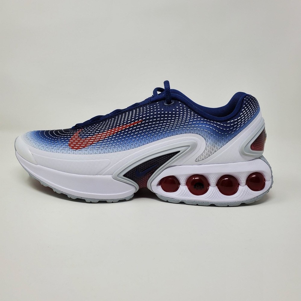 Customized: No Theme: USA Product Line: Nike Air Max US Shoe Size: 11 Style: Sneaker Type: Athletic Department: Men Brand: Nike Color: Blue Style Code: FV2250-100 Model: Nike Air Max DN Country of Origin: Vietnam