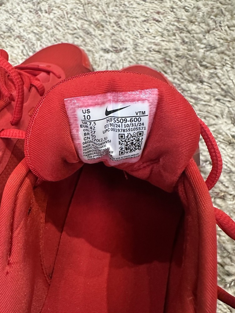 Step out in bold style with these Nike Air Max DN8 athletic shoes in a striking University Red colorway. Designed for comfort and everyday performance, these sneakers feature Nike’s Air Max cushioning for responsive support and a smooth ride, whether you’re walking, training, or wearing them casually. Details: • Brand: Nike • Model: Air Max DN8 • Style Code: HF5509-600 • Men’s Size: 8.5 • Women’s Size: 10 • Color: Red / Red • Closure: Lace-up • Upper: Breathable mesh with synthetic overlays • Sole: Durable rubber outsole with visible Air Max cushioning Condition: • Brand new, excellent condition • See photos for exact condition (photos are of the actual item) Ships fast and securely. Feel free to message with any questions!