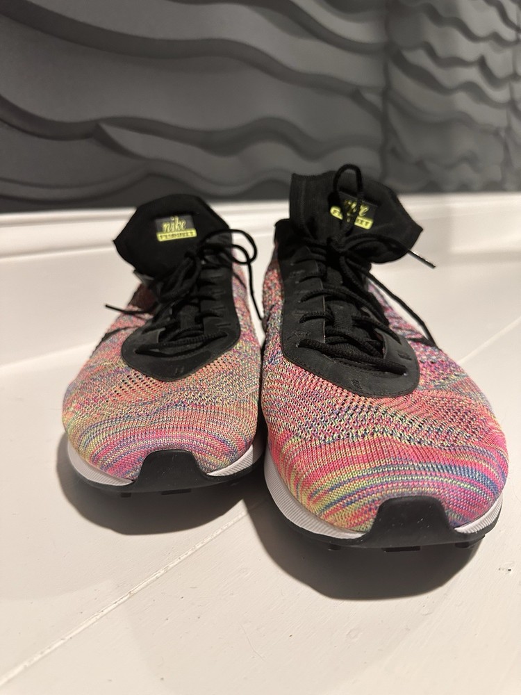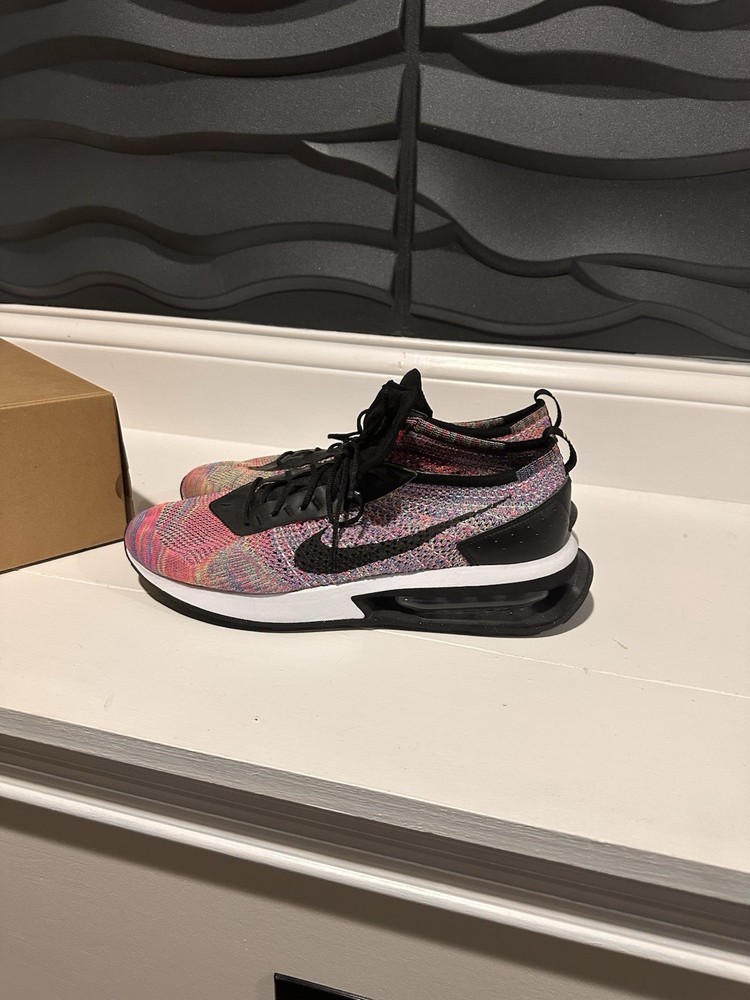 Elevate your sneaker game with the vibrant Nike Air Max Flyknit Racer, a perfect blend of style and comfort. Featuring a unique Ghost Green/Pink Blast/Photo Blue/Black colorway, these kicks are sure to turn heads while providing the signature Nike Air Max cushioning you love. The Flyknit upper material offers breathability and a snug fit, making them ideal for both athletic activities and casual wear. This pair, styled with a sleek DJ6106-300 code, comes in a men's size 13 and boasts the latest in Nike's storied product line. The 2022 release ensures modern technology and design, while the multi-color nickname emphasizes the shoe's bold aesthetic. Step into the year with confidence and flair with the Nike Air Max Flyknit Racer.
