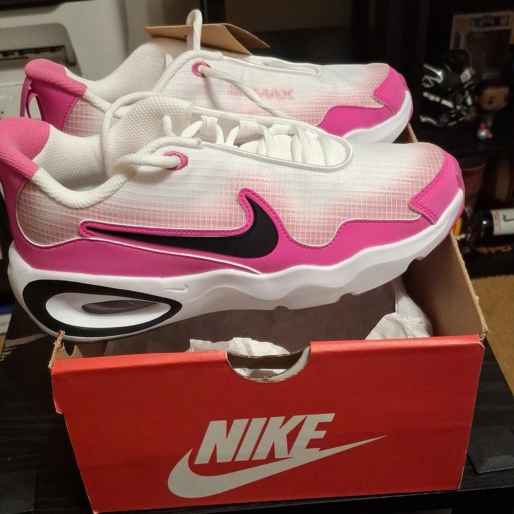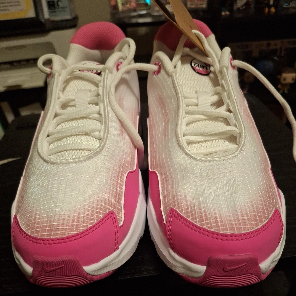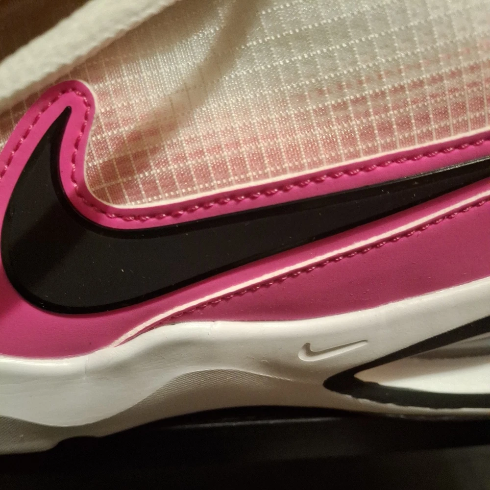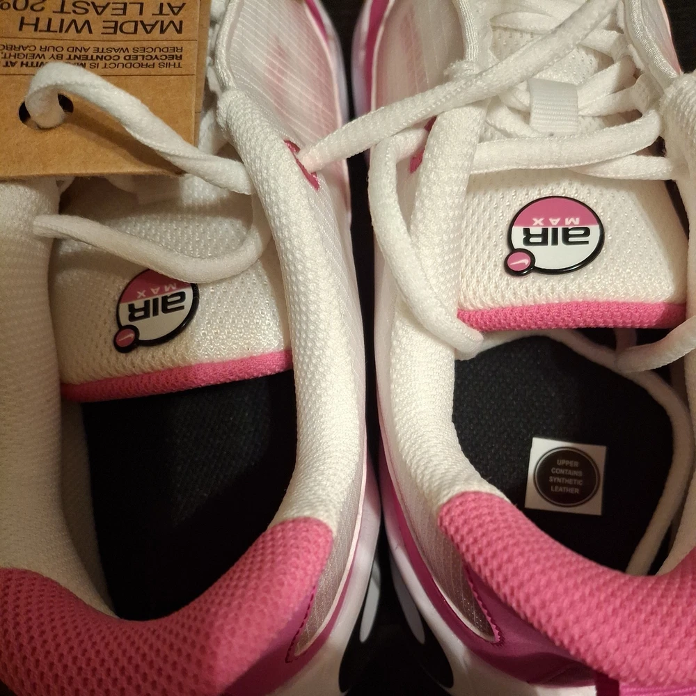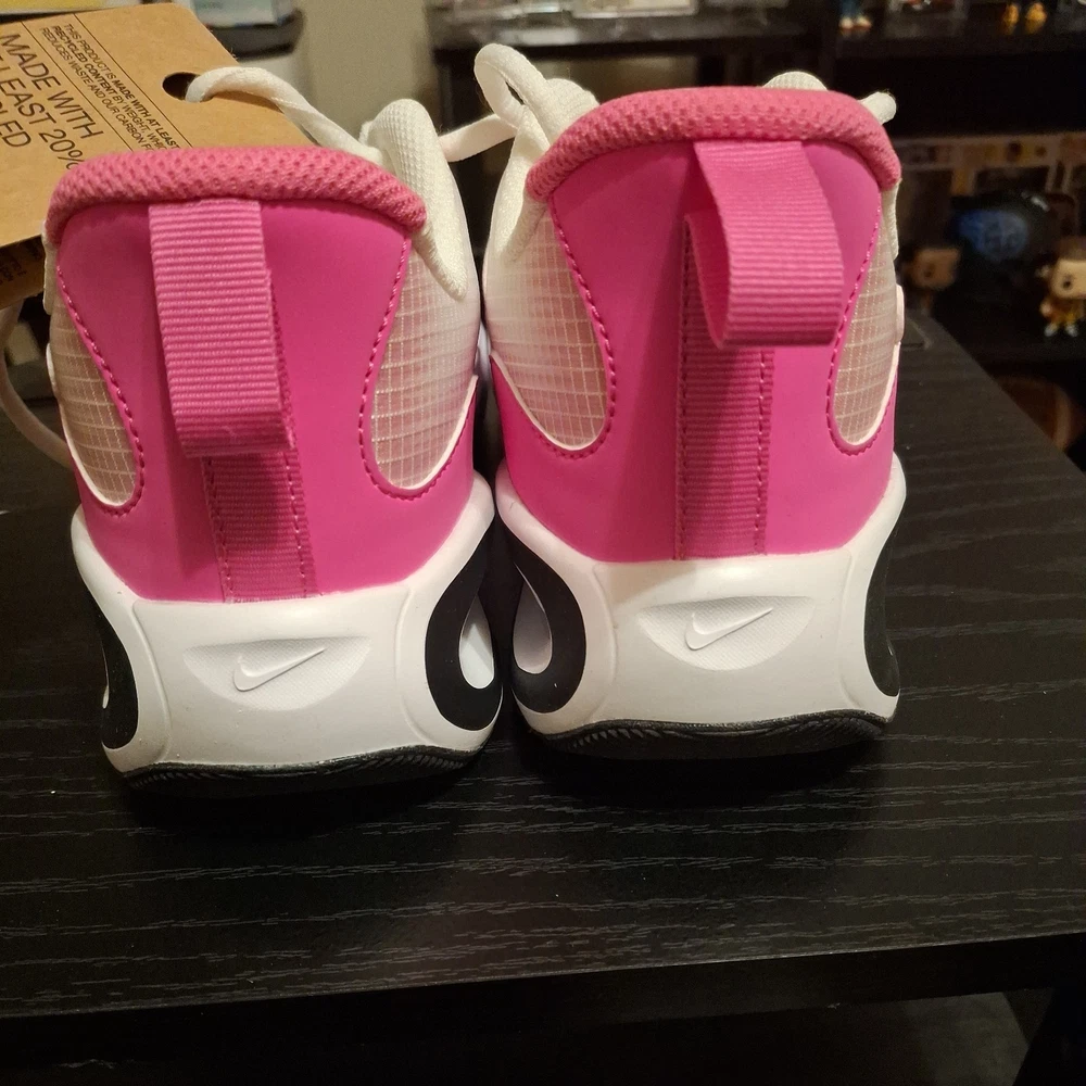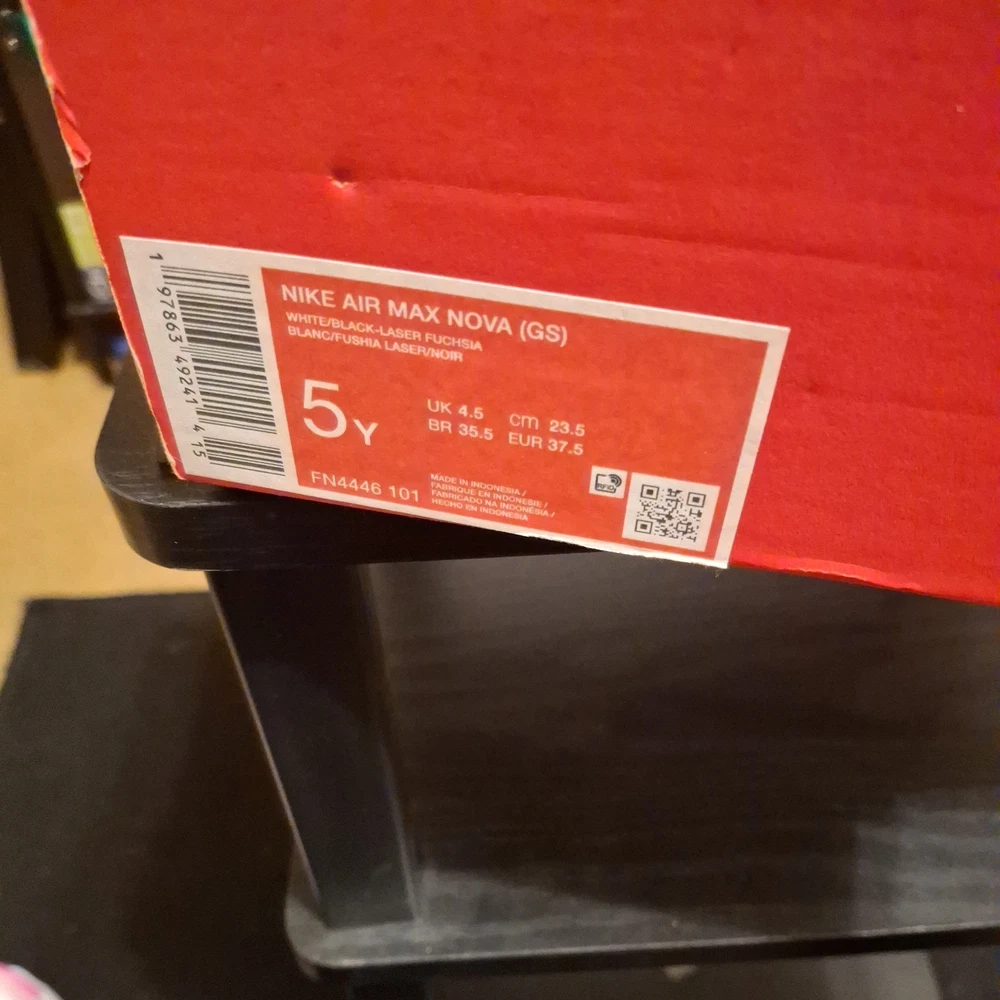 The Nike Air Max Nova (GS) 5Y White/Black/Laser Fuchsia Sneaker is a stylish athletic shoe designed for kids. Featuring a lace-up closure and synthetic upper material, this model offers both comfort and durability. The color scheme of white, black, and laser fuchsia adds a fun and vibrant touch to the design. Perfect for active young individuals, these sneakers are part of the Air Max product line, known for their quality and performance in sports and everyday wear. The sneaker comes with the original box, although the lid is not included.