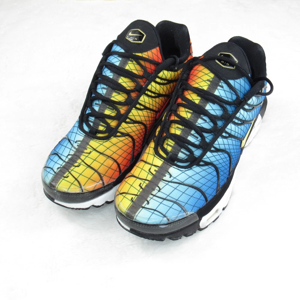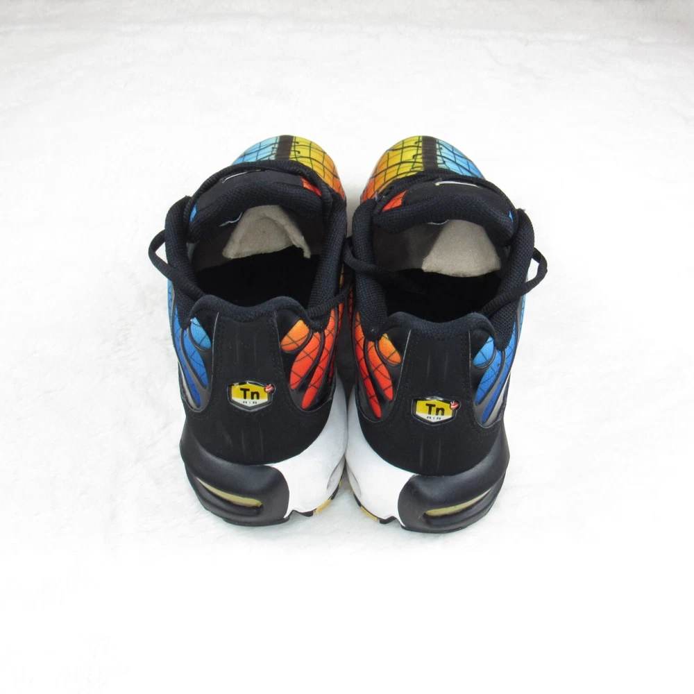 Step into vibrant style with the Nike Air Max Plus TN SE Greedy Black White Yellow, a sneaker that brings bold design to your everyday wear. The iconic silhouette is enhanced with a colorful palette, catering to those who appreciate a splash of vibrancy in their attire. Designed for both men and available in a size 10.5 (US), these shoes promise a comfortable fit for all-day wear, whether you're hitting the streets or just enjoying a casual day out. The Nike Air Max Plus utilizes a synthetic upper for durability and a cushioned insole to ensure your feet stay comfortable during walking or any active pursuit. The low-top shaft style and standard shoe width offer a snug fit without compromising on style. The sneaker's lace-up closure ensures a secure feel, making it an ideal choice for both activewear and casual outings. With its striking look and enduring comfort, this pair is a standout addition to any collection. Nike Air Max Plus Tn SE "Greedy" AV7021-001 Condition: Pre-owned item in good condition. Shows signs of use, including creases on the upper due to wear, minor scuffs on the hard plastic area at the front, minimal wear on the outsole, a few loose threads, and traces of dirt. Additional details: Size: US 10.5 Accessories: Does not include the original box or any additional accessories. Note: The shoes have received a quick cleaning; however, they may still show traces of dirt on the outsole or surface. Please make sure to carefully review the photos before making a purchase. Feel free to ask any questions if you need more information about this pair.
