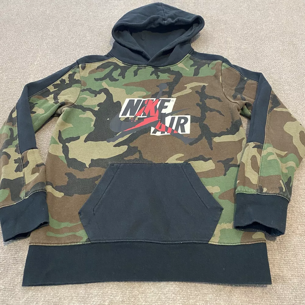 Nike Air Sweatshirt Green Camo Hoodie Air Jordan Jump Man Logo Boys Large 12/13