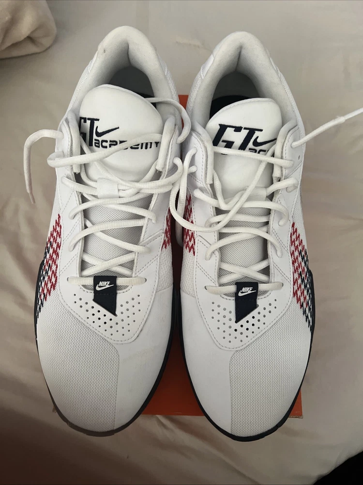 Shipping without box, just shoes Elevate your activewear game with these Nike Air Zoom GT Cut 3 sneakers, featuring a sleek white and obsidian-sport red colorway with a USA theme. These shoes are perfect for gym and training, walking, school, basketball, running, and jogging, making them a versatile addition to your shoe collection. The synthetic upper material ensures durability and comfort, while the lace-up closure provides a secure fit. These shoes are part of the Nike Air Zoom product line and have a low-top shoe shaft style, making them suitable for casual wear and workwear as well. With a style code of HM9425 100 and a release year of 2024, these Nike Air Zoom GT Cut 3 sneakers are a must-have for any sneaker enthusiast. Get yours today and experience the comfort and performance that only Nike can provide.