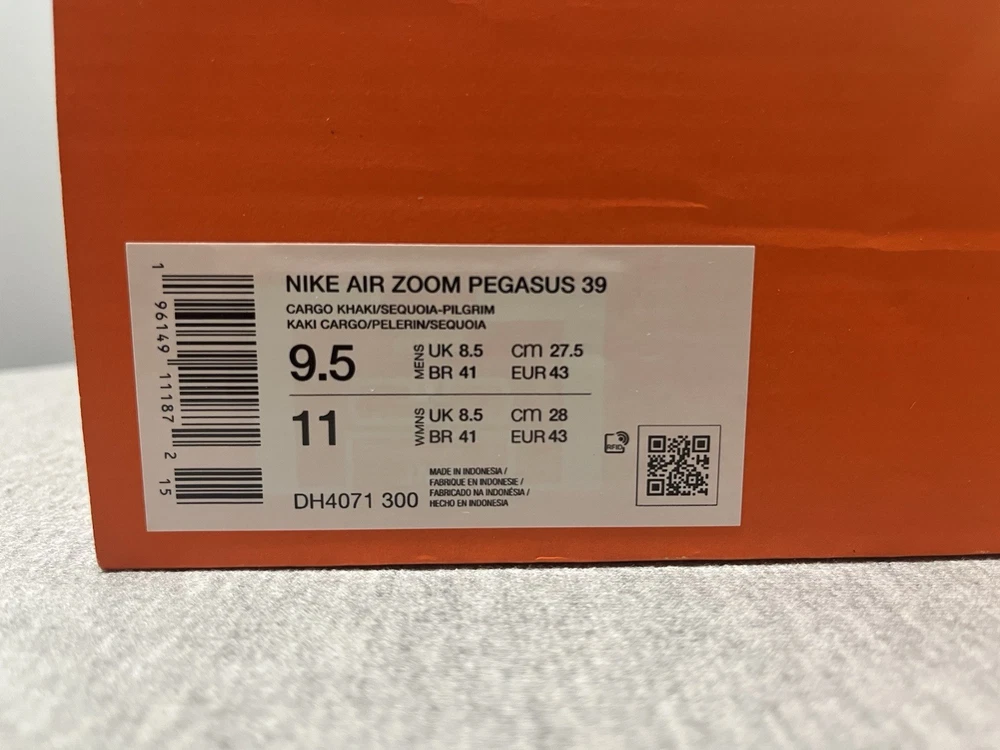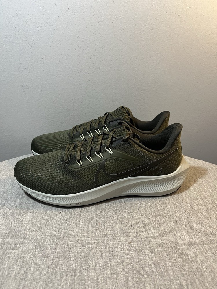 Nike Air Zoom Pegasus 39 Cargo Khaki Running Men's Shoe Size 9.5 DH4071-300 New with the top Lid of the box missing. We always carefully package and ship right away. Reach out with any questions! Men's 9.5 The pair in our photos is the exact pair you are purchasing. Make sure to follow us. We post shoes often and offer bundle pricing.