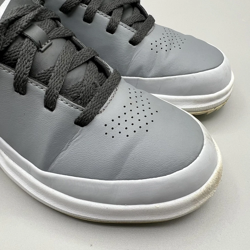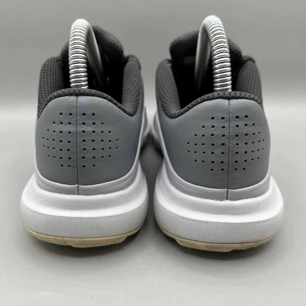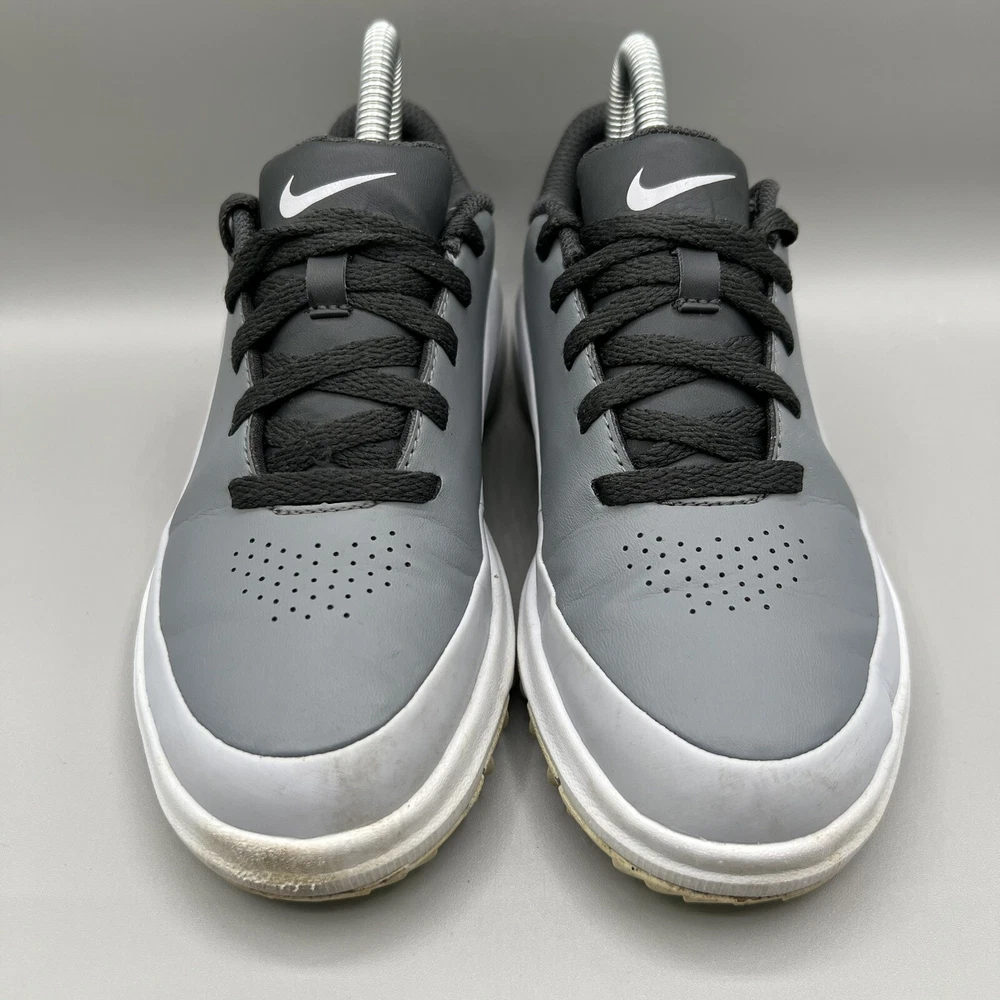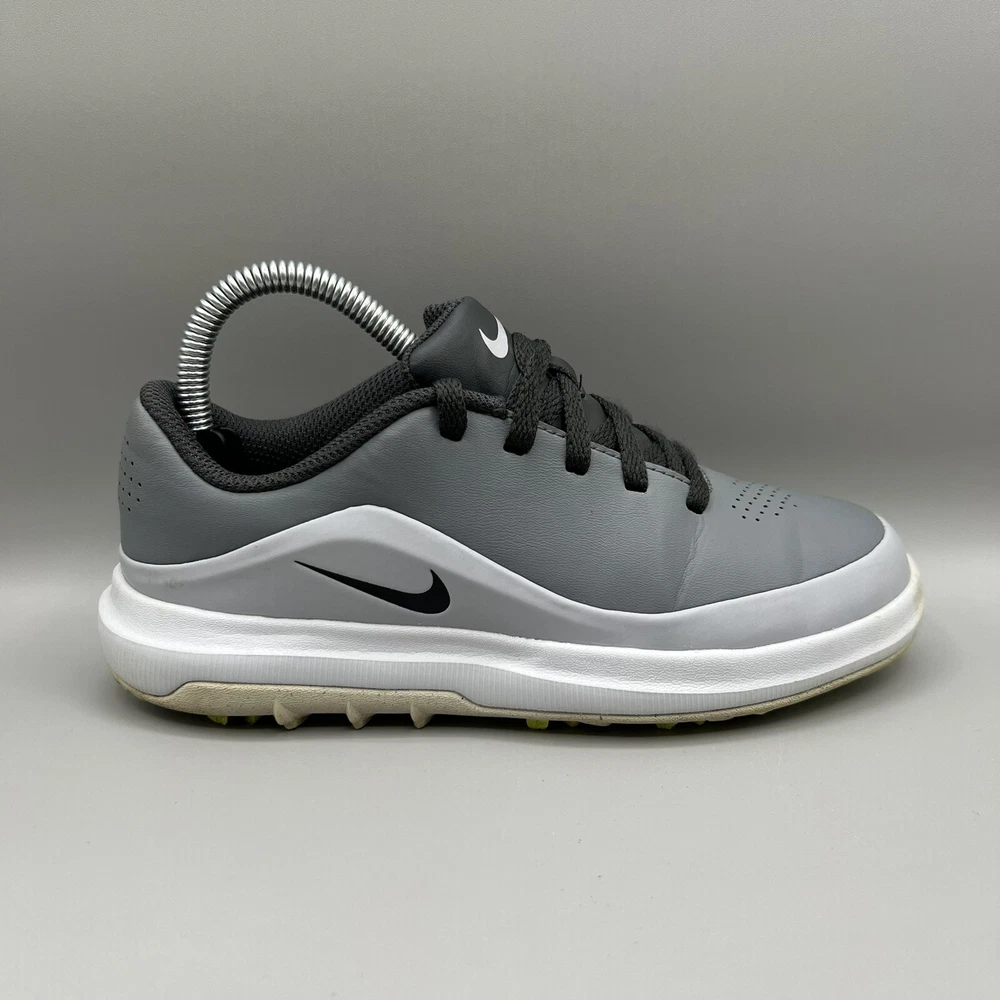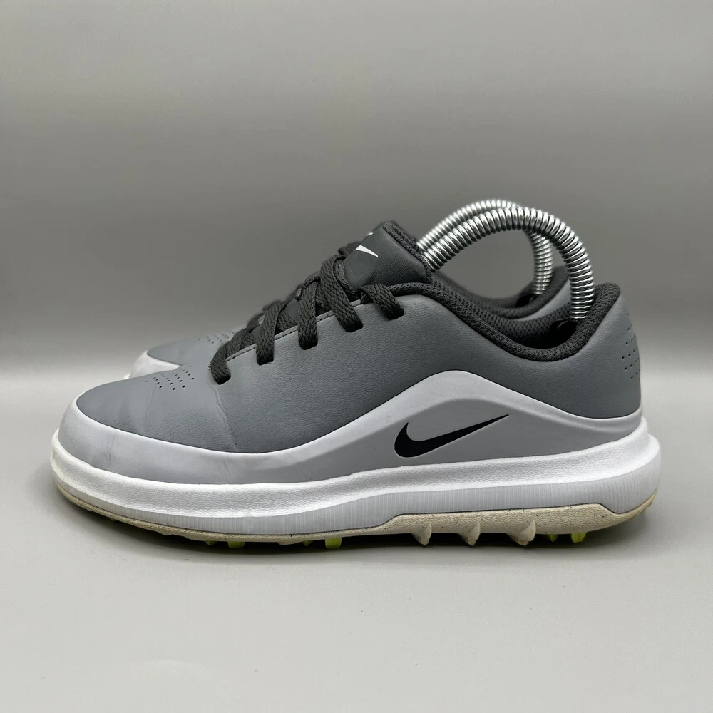 Nike Air Zoom Precision Golf Shoes Youth 1 GS Wolf Gray Silver Spiked 909251-001 Sneakers are in good pre-owned condition. The right pair on the toe box seems to have separation but it’s not separating. Does have many marks and scuffing (all pictured). Smoke free and pet free home. We list new stuff everyday! Feel free to send offers anytime! Please review all pictures and ask any questions you’d like before purchasing! Shipping next business day! The Nike Air Zoom Precision Golf Shoes are designed for youth boys in size 1. These multicolor sneakers feature a lace-up closure, low top shoe shaft style, and rubber spikes for traction on the golf course. The shoes are part of the Nike Air Zoom product line and are suitable for golfing activities during summer, fall, and spring seasons.