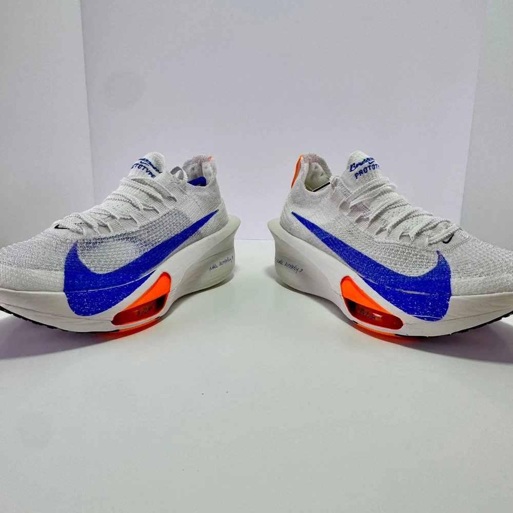 Elite marathon-level performance in the newest Alphafly 3 colorway. Lightweight, propulsive, and brand new with no signs of wear. Perfect Q4 holiday gift for runners or collectors. • Brand: Nike • Style: Alphafly 3 racing sneakers • Color: White / Racer Blue / Total Orange • Size: Men's 10.5 (see measurements in photos if applicable) • Material: Flyknit upper / ZoomX midsole • Made in: Vietnam • Weight: (auto-fill from Nifty) Condition: NWT — absolutely clean with no flaws. ⸻ KEYWORDS alphafly 3, nike racing, marathon shoes, zoomx, carbon plate, men's running, elite racer, nwt, holiday gift, performance runner
