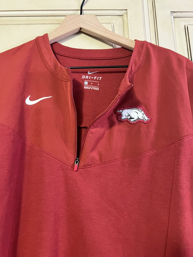 Show your support for the Arkansas Razorbacks with this officially licensed Nike Coach Jacket. Perfect for football season, this red jacket features the team's logo and is made from high-quality materials for comfort and durability. The jacket is designed for men and comes in size M, making it a great addition to any fan's collection. Whether you're heading to a game, watching from home, or just want to show off your team spirit, this Nike Arkansas Razorbacks Coach Jacket is the perfect choice. It's ideal for NCAA events and tournaments, and is sure to make you stand out from the crowd. So why wait? Order yours today and show everyone that you're a true fan!