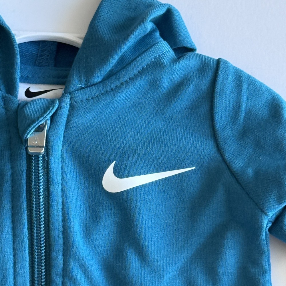 Brand new with tags! This Nike hooded coverall features a smooth full-zip front zipper, faux kangaroo pocket and swoosh logo on left chest. Color: Green Abyss Size: 3 Months Check out all of my listings for clothing, shoes and accessories for babies and toddlers size newborn to 5T.