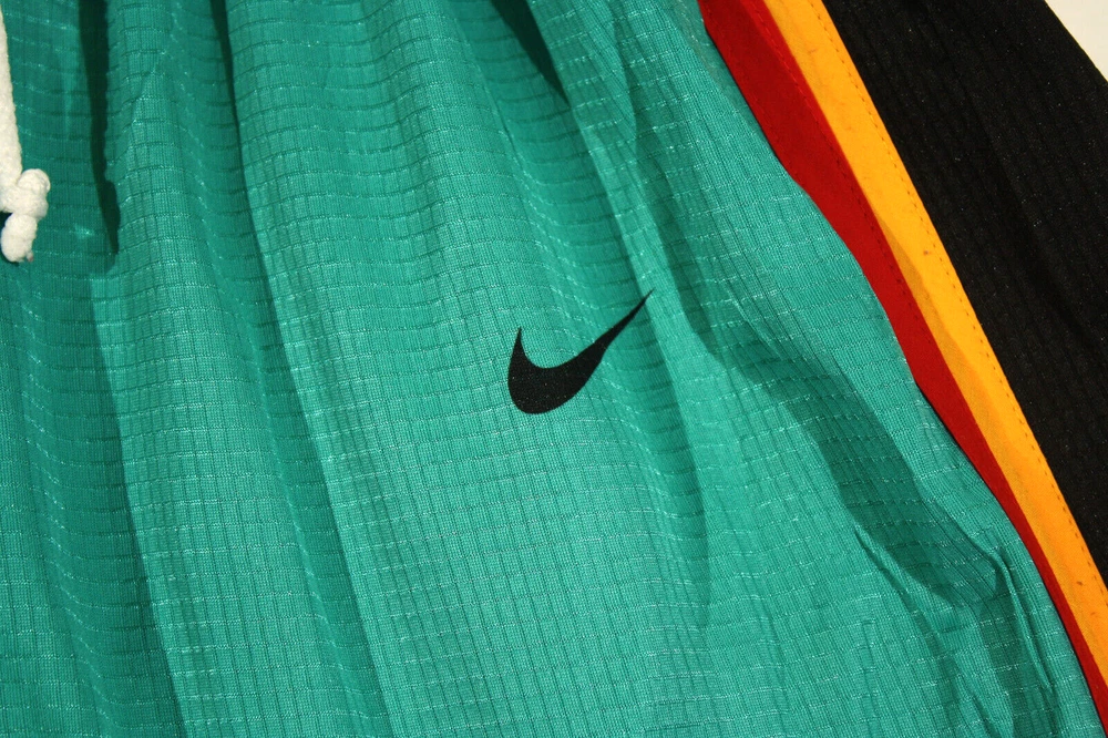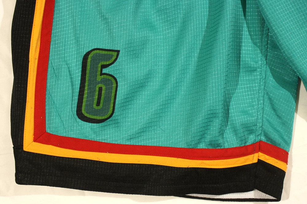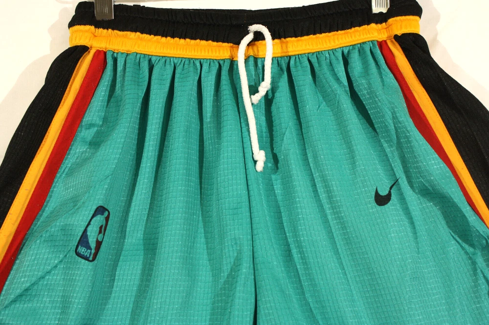 Nike Basketball Shorts NBA Detroit Pistons Retro Throwback Drawstring & Elastic Waist, #6 on Front, DP on Front...Teal with Black, Gold, & Red Trim Excellent Preowned Condition. No Significant flaws or wear. Size: Unknown...Please see measurements... Measurements (in inches) when laid flat: Waist: 12 Inseam: 11 Outseam: 21 Leg Opening: 13 Please see all pictures as they are an important part of the listing...If you have any questions or are in need of additional pictures, please don't hesitate to contact me...Thank You for your interest...Take Care and have a wonderful day