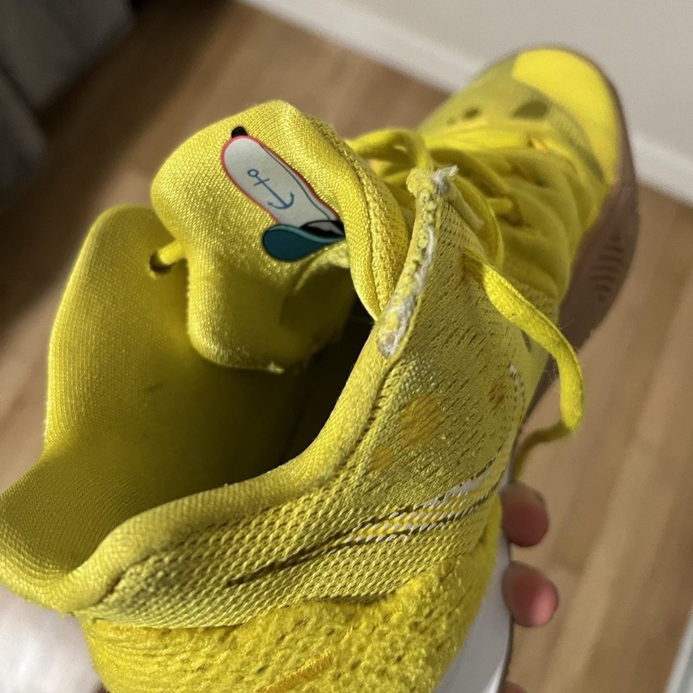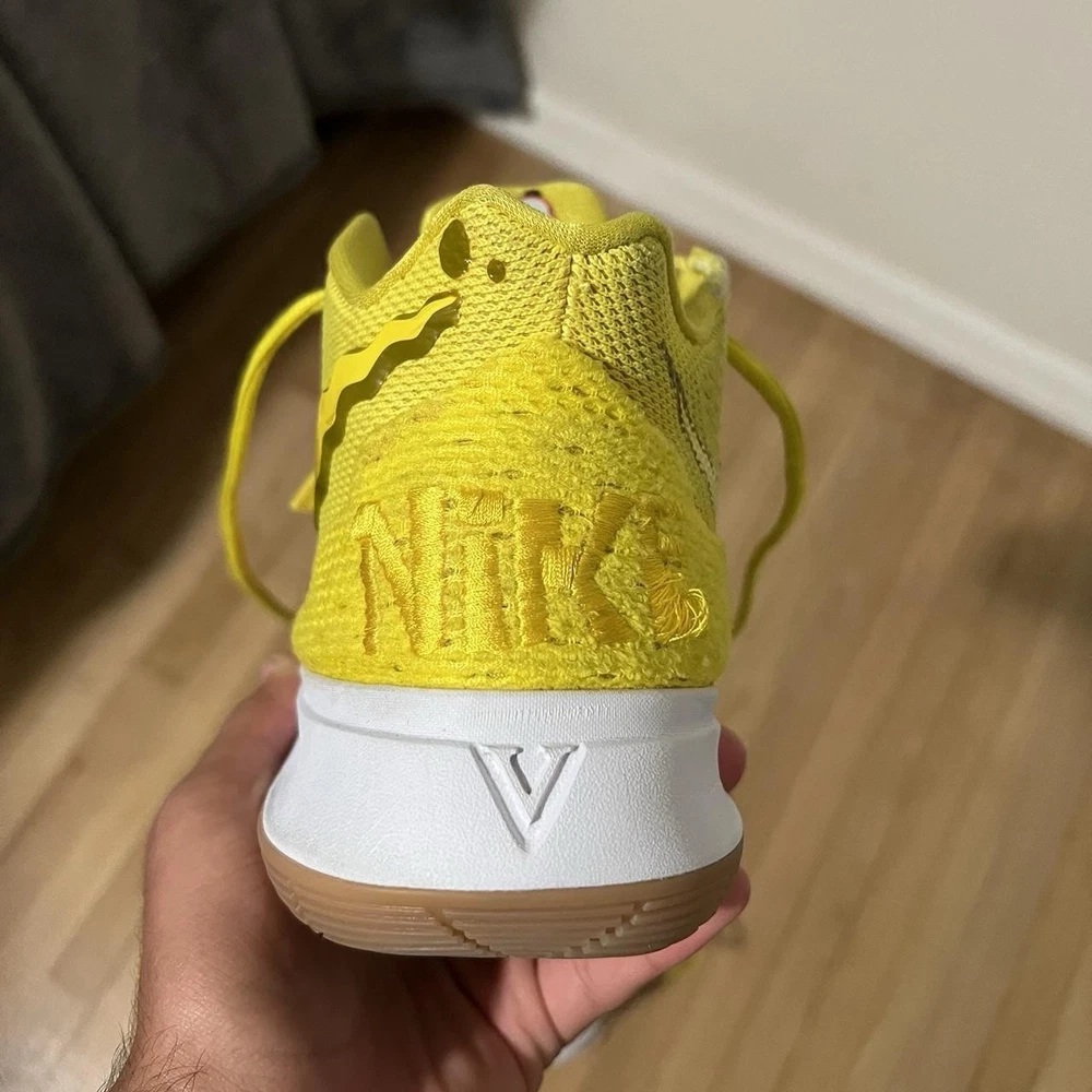 Step up your game with the Nike Basketball SpongeBob SquarePants Kyrie 5 Sneakers in a vibrant Opti Yellow colorway. These size 8.5 athletic shoes blend style and performance, featuring a unique design that pays homage to the beloved animated series. The sneakers are a part of the Nike Kyrie product line, known for their comfort and durability. Crafted with the quality Nike is known for, the sneakers boast the style code CJ6951-700 and were released on August 11, 2019. They are designed for men who appreciate a blend of nostalgia and modern flair. The iconic 'SpongeBob' nickname adds a fun twist to the sneakers, making them a standout addition to any collection.