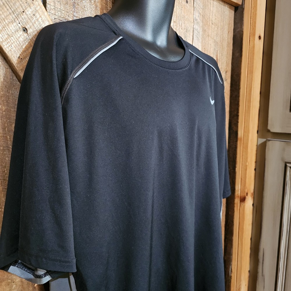 Nike Black Men's 2XL XXL Shirt Dri-Fit Training Running Short Sleeve EUC Chest-26" across pit side and Length-32"
