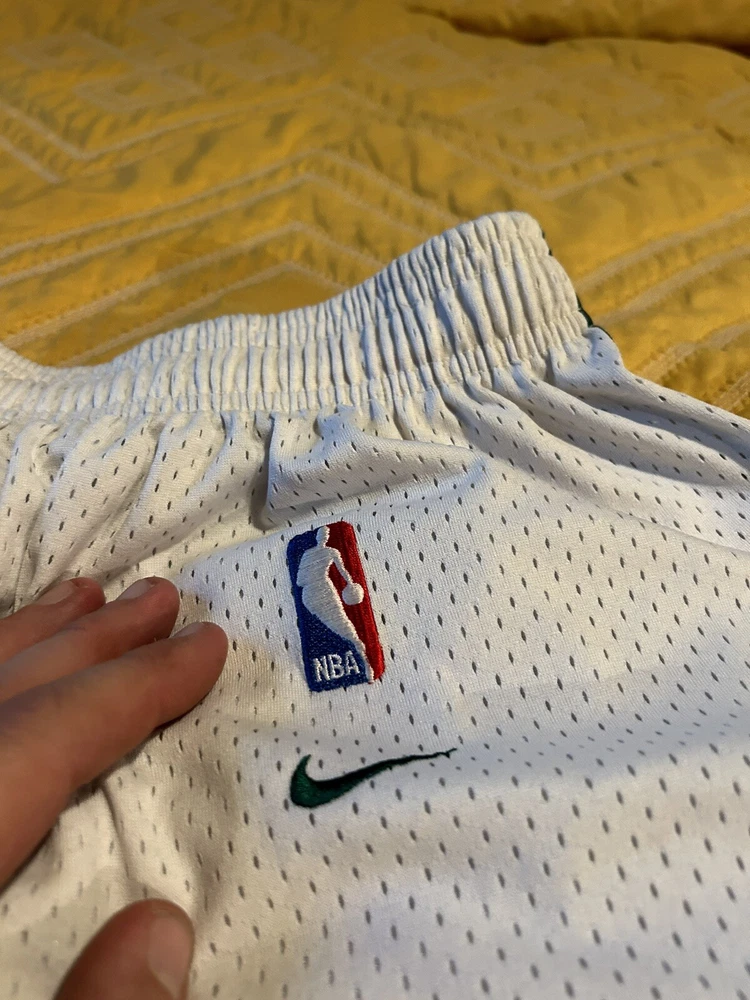 Show off your love for the Boston Celtics with these Nike NBA Lookalike Shorts. These gray shorts feature the team's iconic logo and colors, making them the perfect addition to any fan's collection. Made from high-quality materials, these shorts are comfortable and durable, ensuring that you can wear them to the next game or just around town. They are officially licensed by the National Basketball Association (NBA) and are perfect for any basketball fan, especially those who support the Boston Celtics. These shorts are available in size small and are designed for men. Get your hands on these vintage shorts and show off your team spirit today!