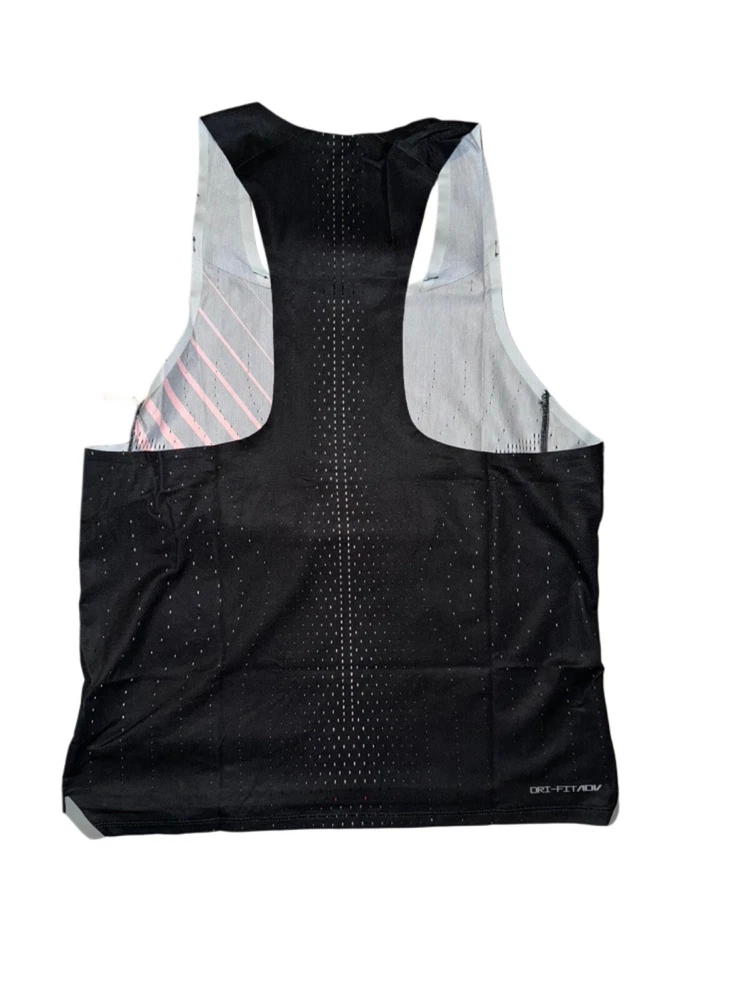The Nike Bowerman Dri-Fit ADV Aeroswift Track Singlet DR5808-010 is a men's tank top in size small. It is designed for activewear, featuring a medium fabric wash and a multicolor design. This tank is part of Nike's Bowerman collection, known for its innovative and high-performance athletic apparel. Perfect for workouts or running, this tank is made with Dri-Fit technology to keep you dry and comfortable during physical activities.