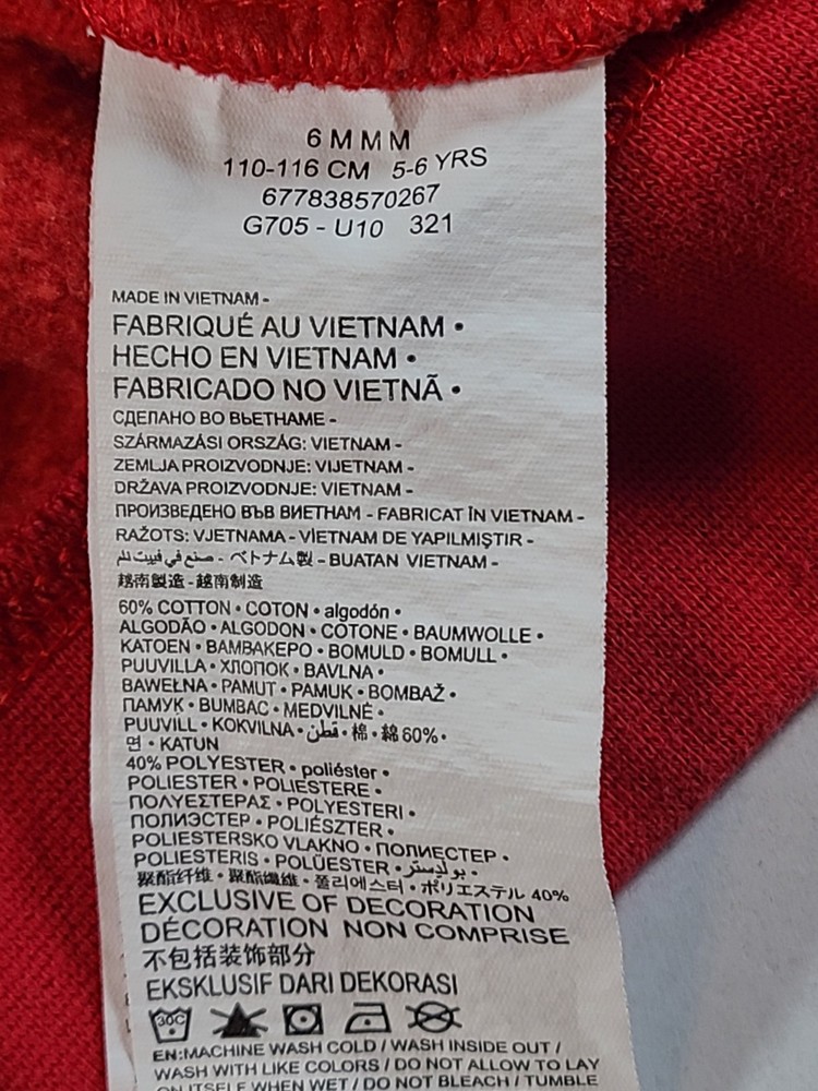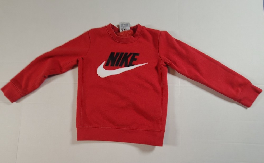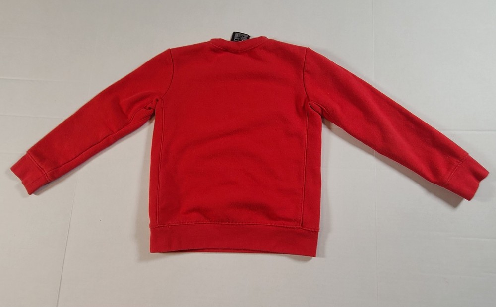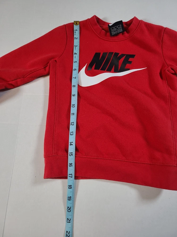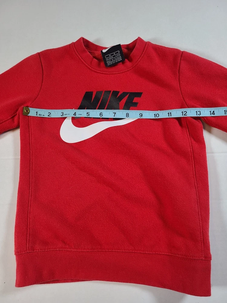 This Nike Boys Red Sweatshirt in size 5-6 is a stylish and comfortable option for young boys. Made from a blended fabric of 60% cotton and 40% polyester, it features a pullover style with a round neckline, long sleeves, and a logo accent. Ideal for travel, activewear, and casual occasions, this sweatshirt is easy to care for and breathable, making it perfect for the winter, fall, and spring seasons. The red color and solid pattern add a pop of color, while the Nike brand adds a touch of sports and logo themes to the design. Perfect for active boys on the go. See photos for measurements approximate. EUC