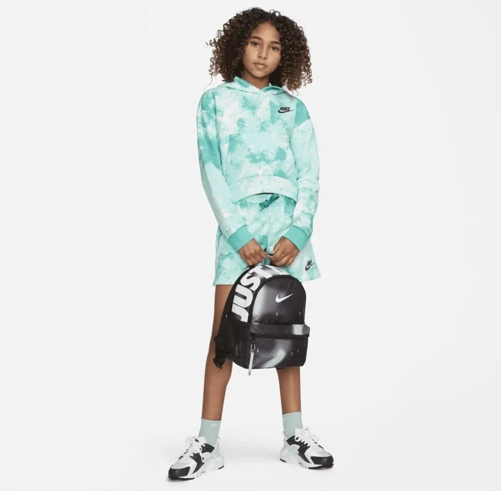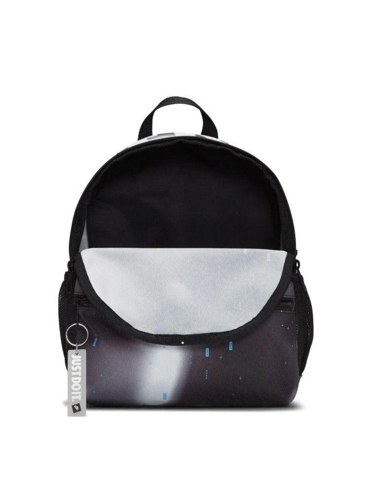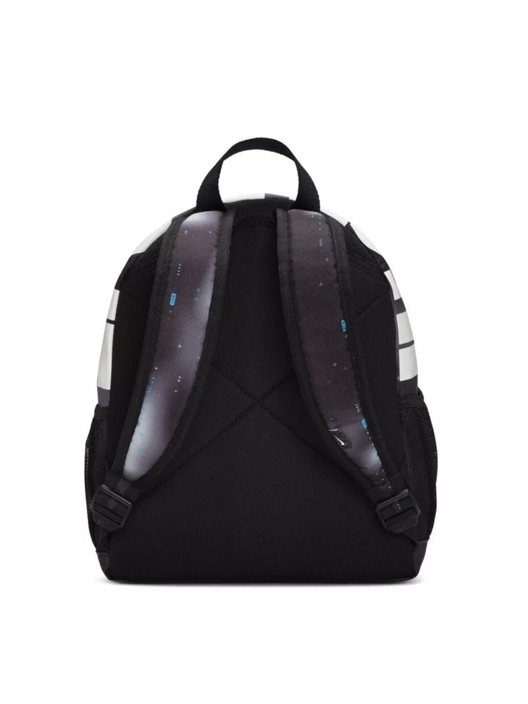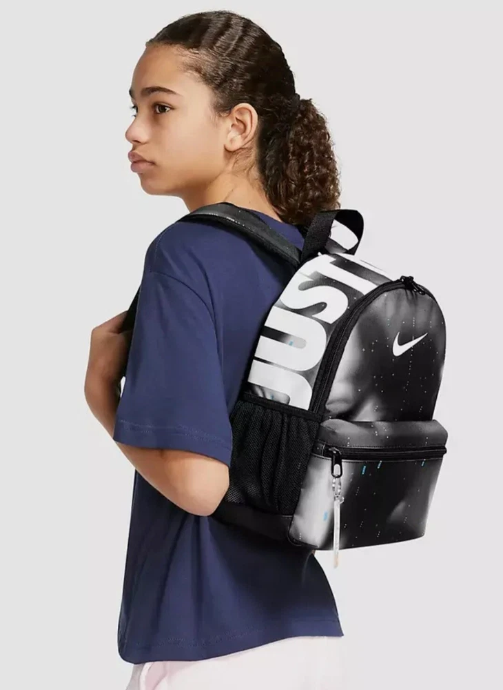 Nike Brasilia Just Do It JDI Mini Backpack Bag - 2 mesh side pockets provide space for water bottles and small goods - Padded shoulder straps are adjustable for a comfortable fit - Haul loop provides an alternate carrying option Sku: DR6095 Size: Small 13" H x 10" W x 5" D Color: Black - Glow in the dark “Nike” Fabric : 100% polyester Condition: NEW with tags