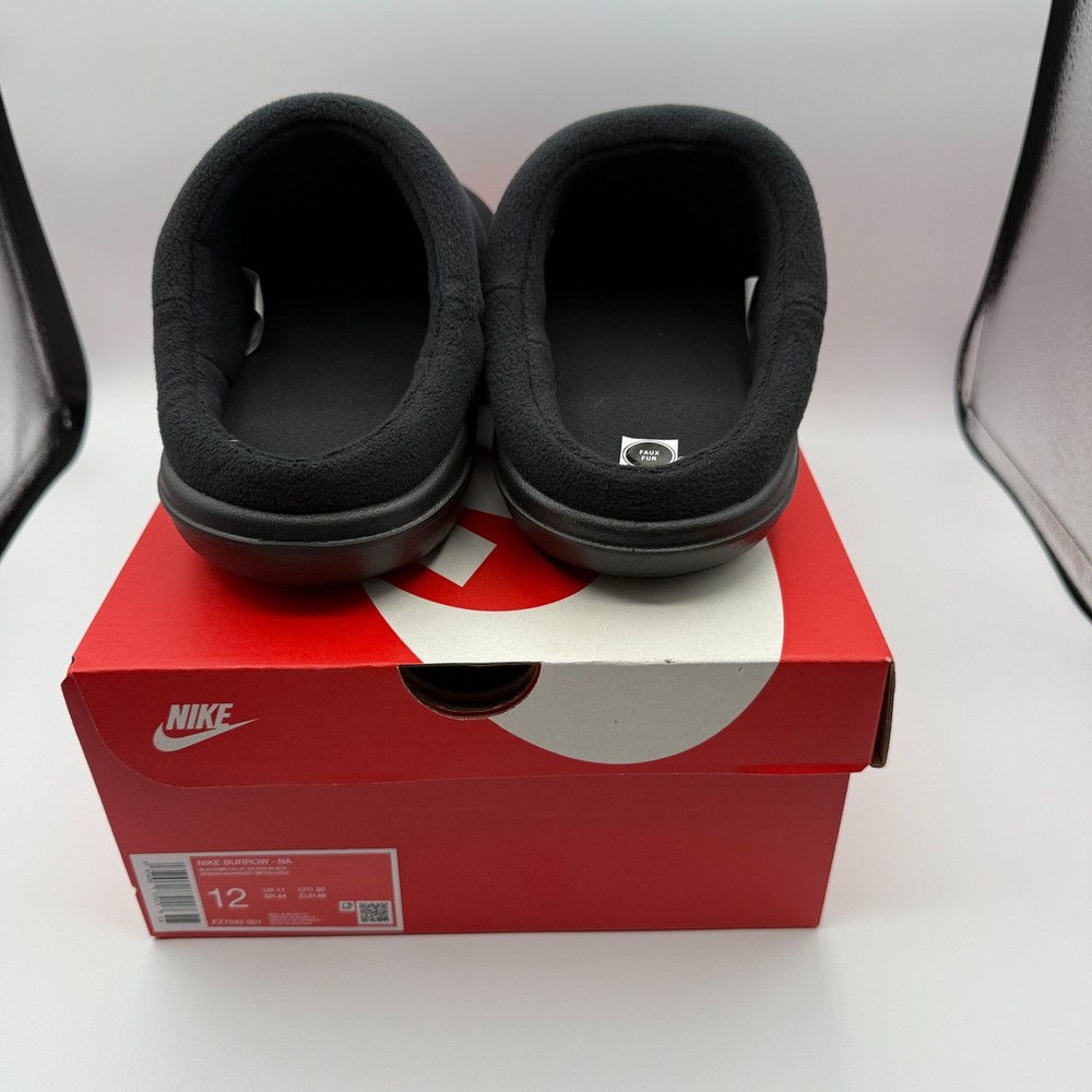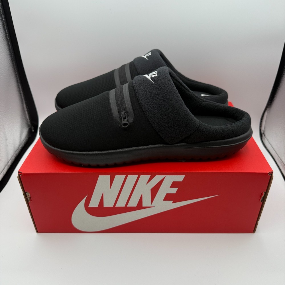 Nike Burrow Slipper Mens Size 10 Black Comfort Slides with Zip FZ7942-001
