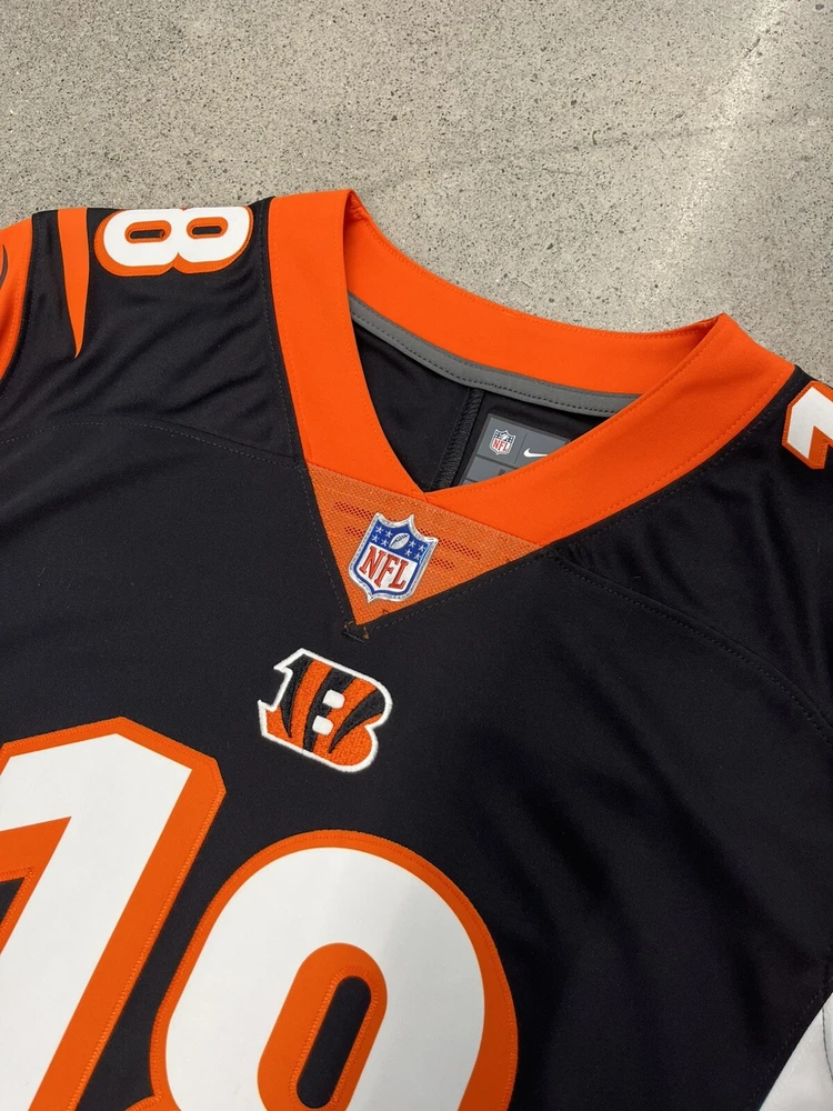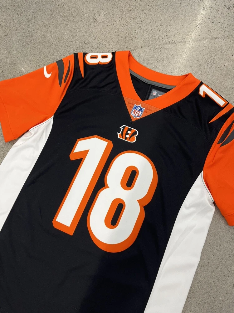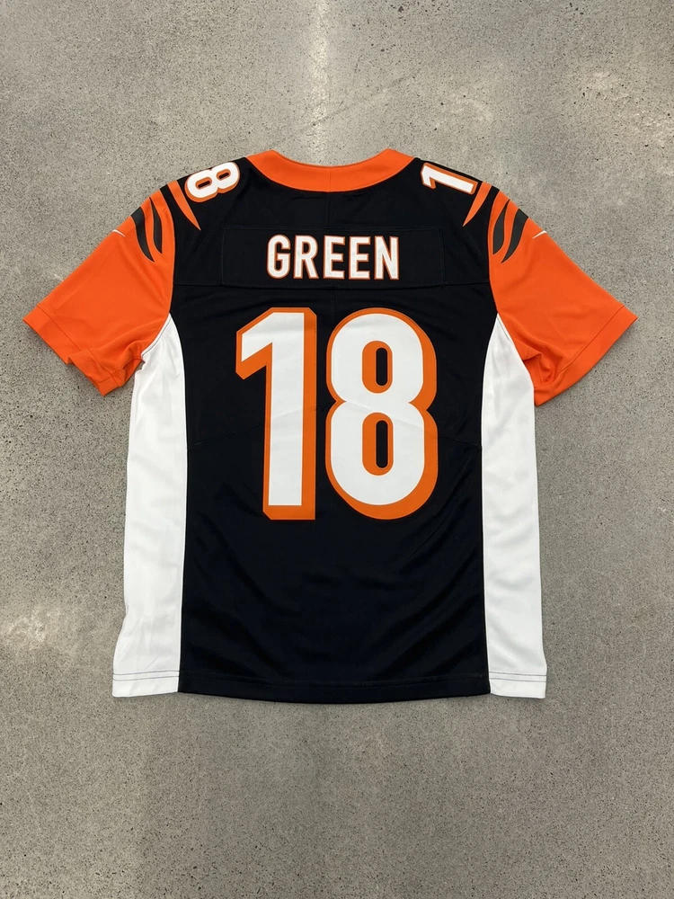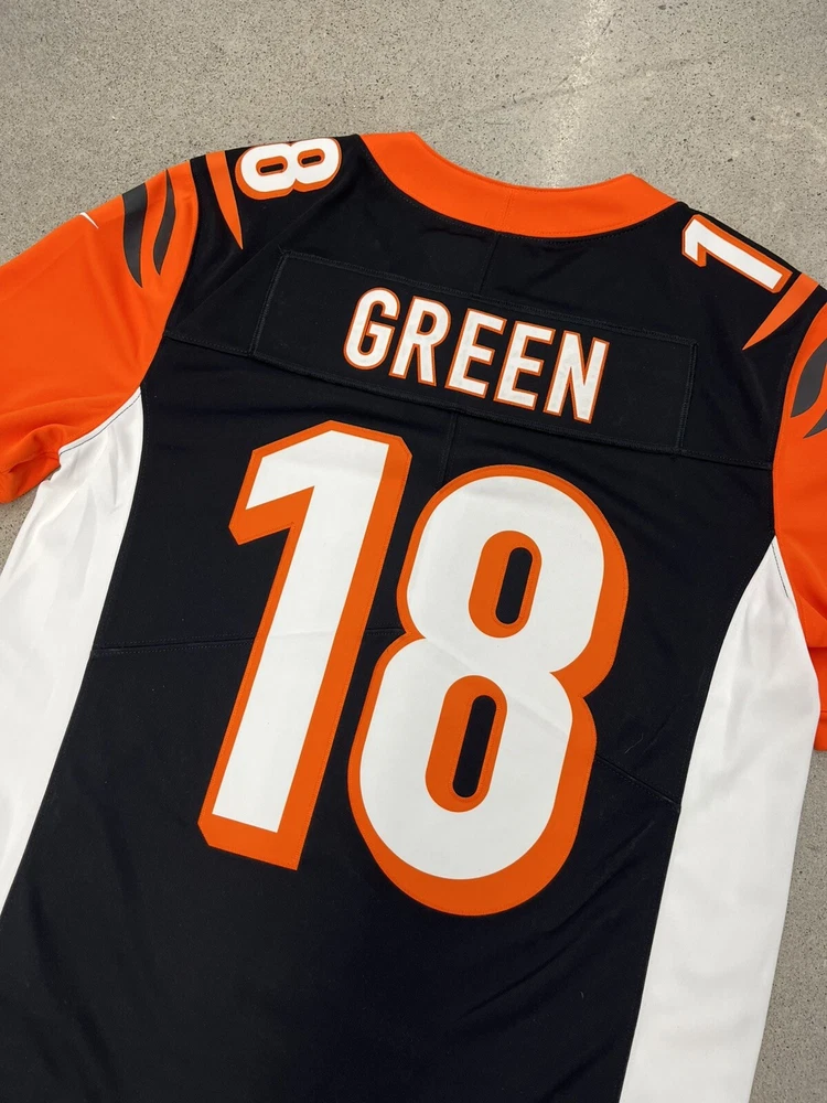 Get game-day ready with this Nike Cincinnati Bengals AJ Green On Field Jersey. Officially licensed by the NFL, this men's medium black jersey features Green's name and number on the back, perfect for showing your support for the Cincinnati Bengals. Made for football fans who want to represent their team in style, this jersey is a must-have for any die-hard NFL enthusiast. Whether you're cheering from the stands or watching from home, this high-quality Nike jersey is the ultimate way to display your team pride.