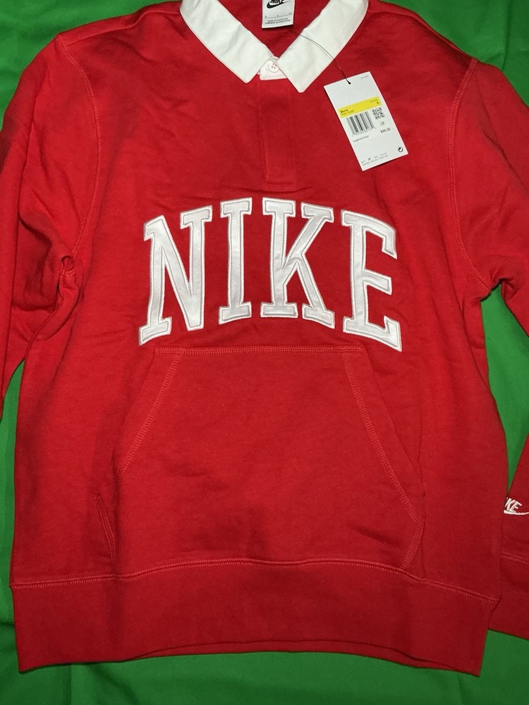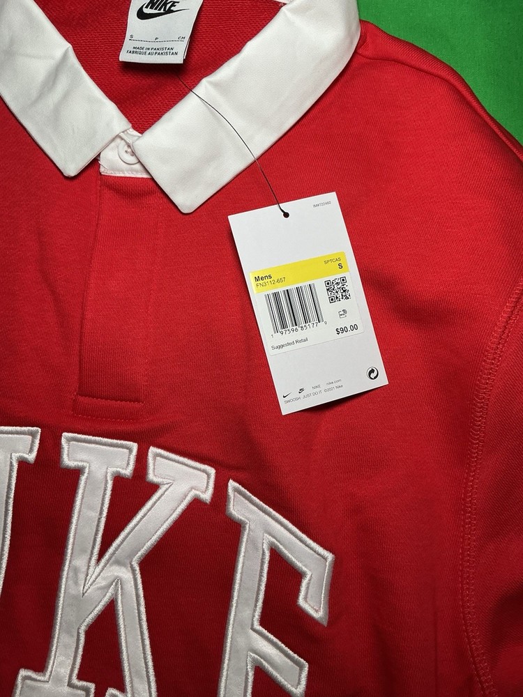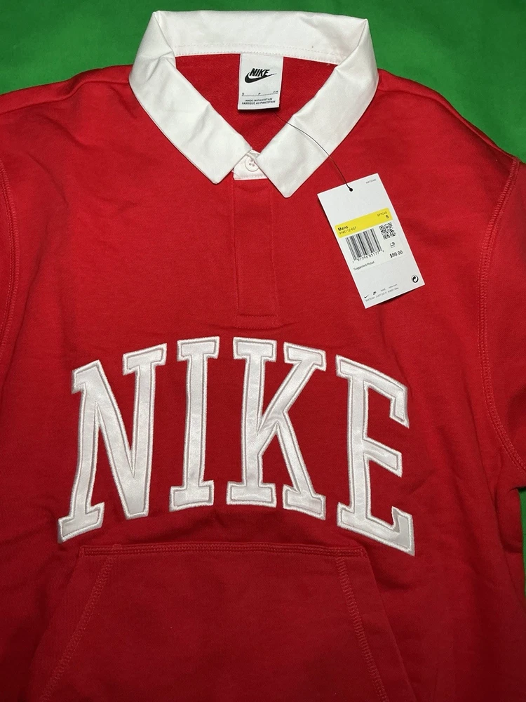 Nike Club Fleece Polo Red Men's Small FN3112-657 Long Sleeve