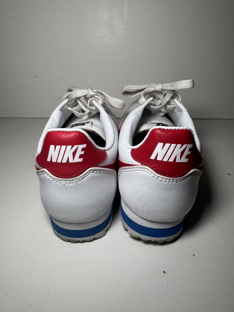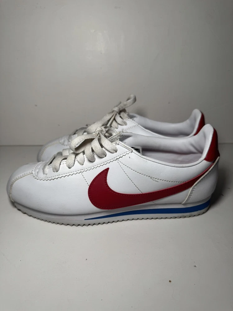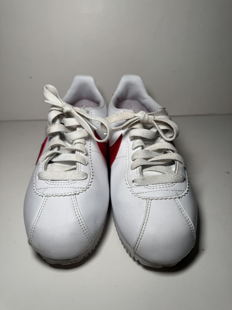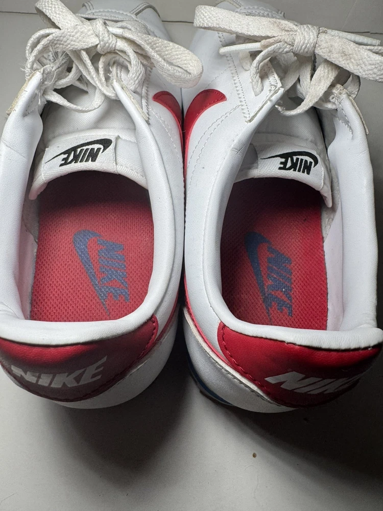 The Nike Cortez trainers in white with red and blue accents are a retro-inspired pair of shoes that pay homage to the iconic Nike Cortez model. Made with leather upper material and featuring a lace-up closure, these trainers are perfect for both activewear and casual occasions. With a comfortable design and standard shoe width, they are a stylish choice for anyone looking to add a touch of retro flair to their footwear collection. Perfect for gym and training activities, these Nike Cortez trainers are a stylish and functional addition to any wardrobe.