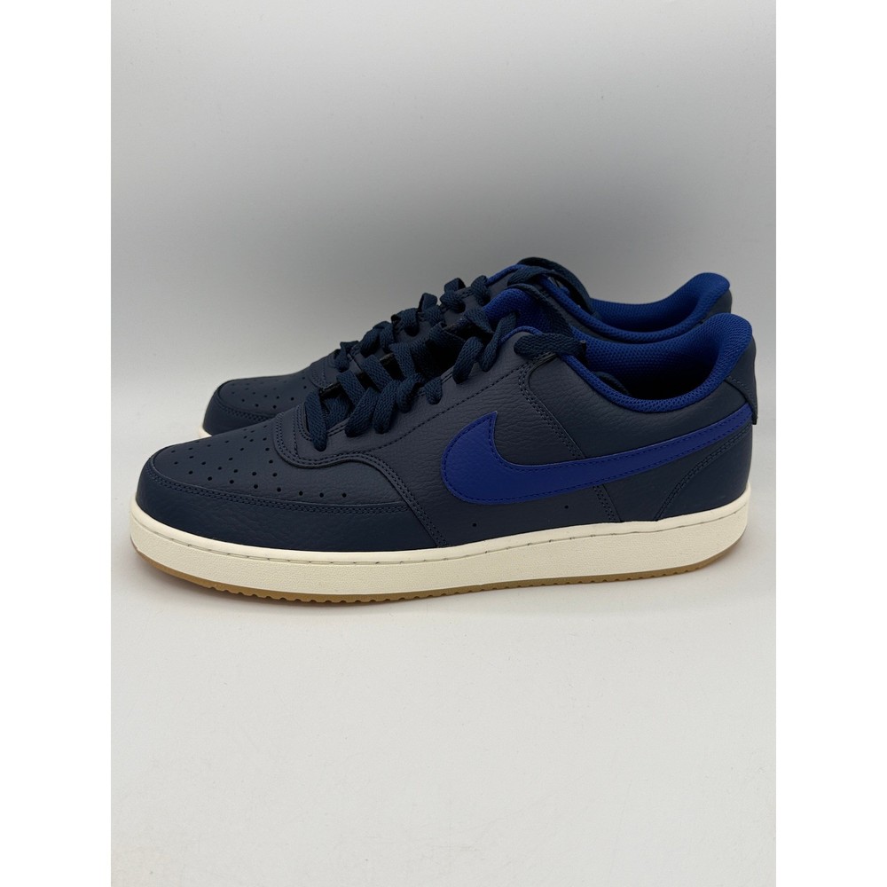 Court Vision Low sneakers merge the fast-break style of 1980s basketball with the fast-paced culture of today's game. These low-top shoes feature a crisp upper inspired by old-school hoops sneakers and a classic rubber cupsole seen on some of the most iconic silhouettes of the past. The midnight navy pebbled leather upper is accented by deep royal blue Swooshes and a clean sail midsole, finished with a durable gum rubber outsole for a timeless look. Brand: Nike Model: Court Vision Low Style Code: CD5463-400 Colorway: Midnight Navy/Deep Royal Blue/Sail/Gum Light Brown Upper Material: Synthetic Leather Outsole: Gum Rubber Closure: Lace-up Toe Type: Perforated Round Toe Silhouette: Low Top Theme: 80s Basketball Retro Keywords: Hoops, Retro, Sportswear, Streetwear, Athleisure, Classic, Navy Blue, Gum Sole, Casual, Everyday, Minimalist, Vintage Inspired, Low-cut If you have any additional questions, please don't hesitate to contact me direclty.