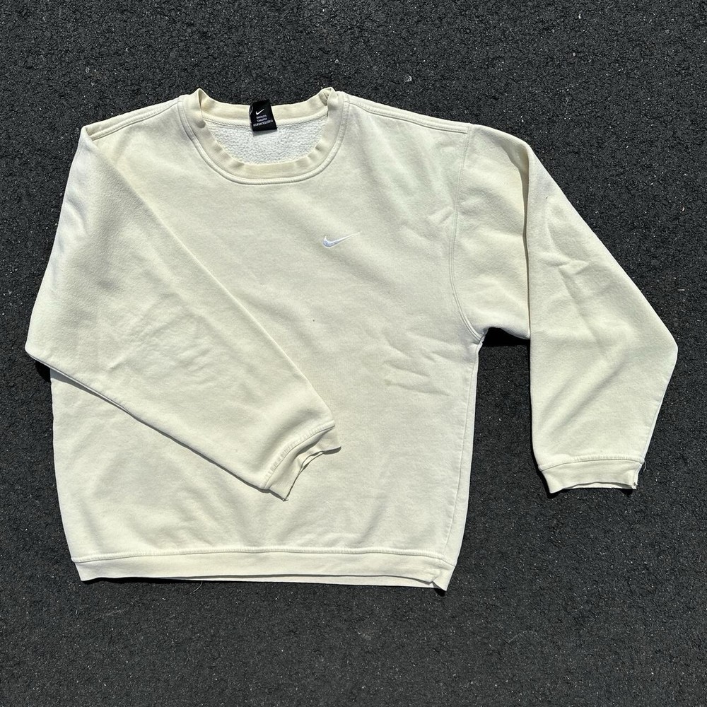 Nike Sweatshirt Men’s M, Boys XL Cream Yellow Pastel yellow. Cream color. Butter. Boxy cropped fit, super nice vintage soft material. One of the nicest sweatshirts I own but I got too fat for this bruh. Very rare find, possibly Nike golf. Length (collar to bottom): 21.5” Pit to Pit: 23” Sleeve length: 21.5” to shoulder, 28” to collar