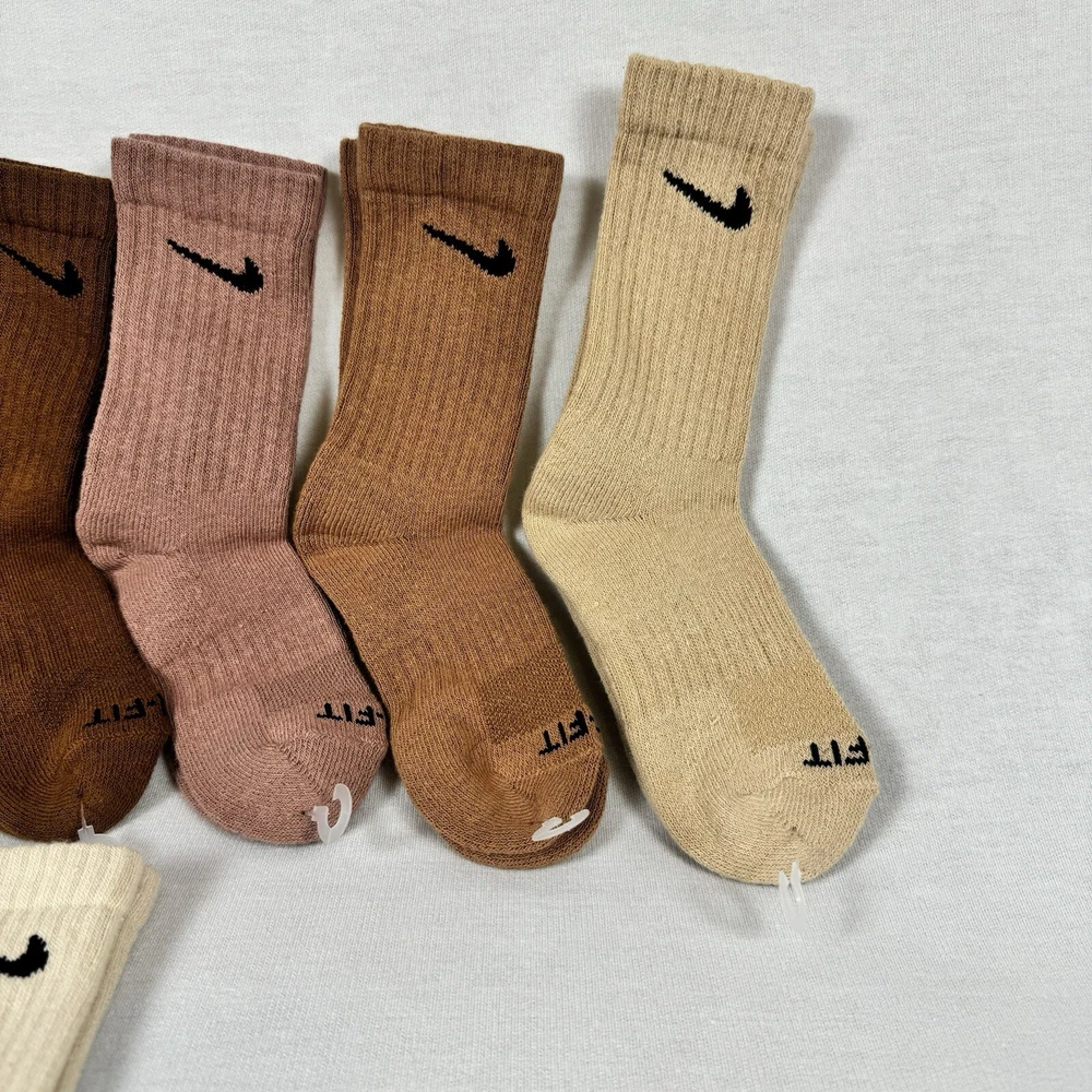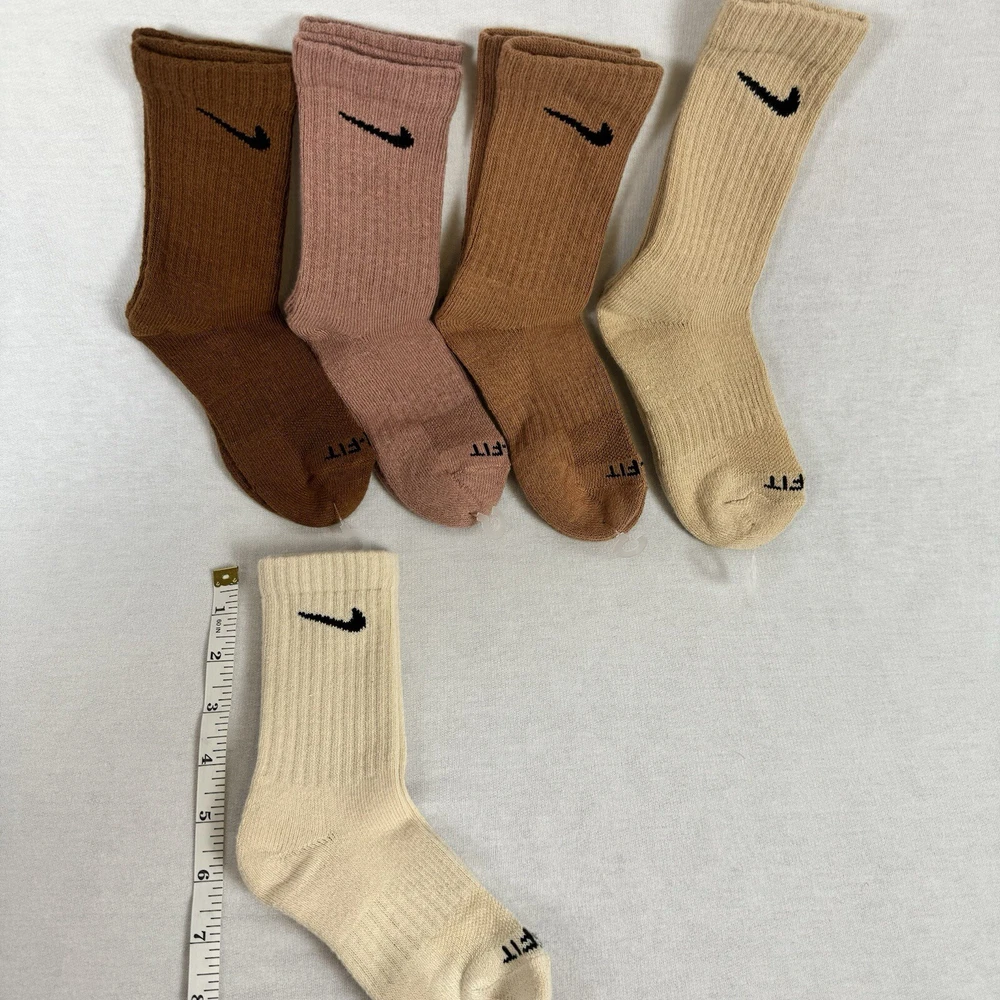Elevate your sock game with these Nike Dri Fit Everyday Crew Socks. This 5 pack set comes in a beautiful multicolored design with a logo pattern that is perfect for casual occasions. Made of a blend of polyester, nylon, cotton, and elastane, these mid-calf socks are cushioned for extra comfort and suitable for gym and training activities. The size small (7-9) socks are designed for young-ins and have a pastel theme that is perfect for winter, summer, and spring seasons. These socks are the perfect addition to your wardrobe and are a must-have for any Nike fan. Get your hands on these socks now and experience the comfort and style that only Nike can provide.