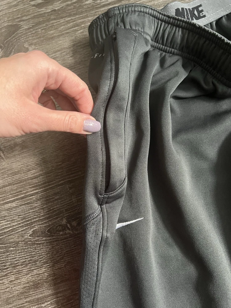 Elevate your workout wardrobe with these Nike Dri-FIT Men's Track Pants. Designed with a blend of polyester, these lightweight pants are perfect for gym and training sessions. The drawstring closure and classic fit provide a comfortable and secure fit, while the pockets add a practical touch. The pants feature a solid gray color and the iconic Nike logo, making them a stylish addition to your activewear collection. Machine washable and easy to care for, these pants are a must-have for any fitness enthusiast.