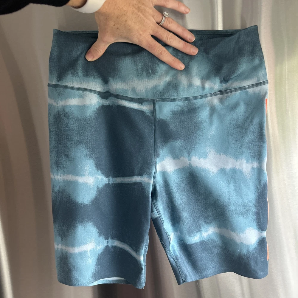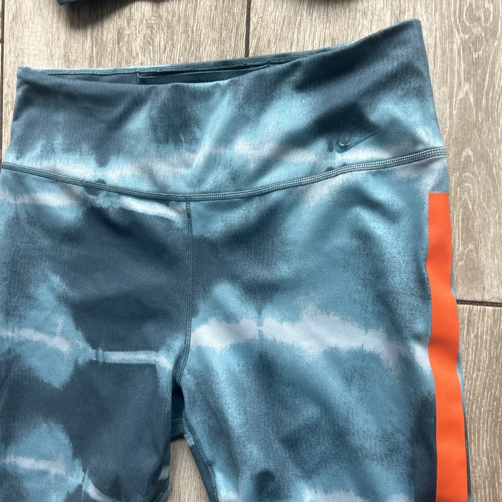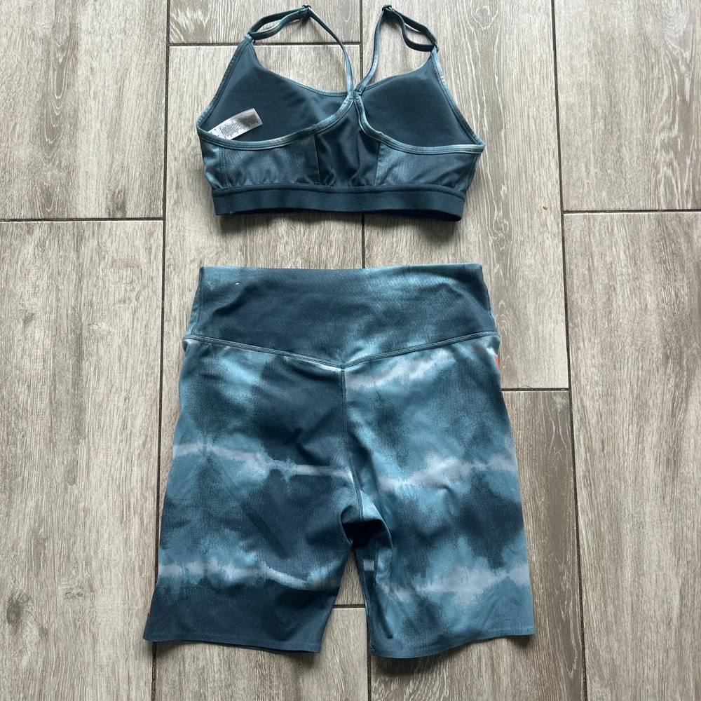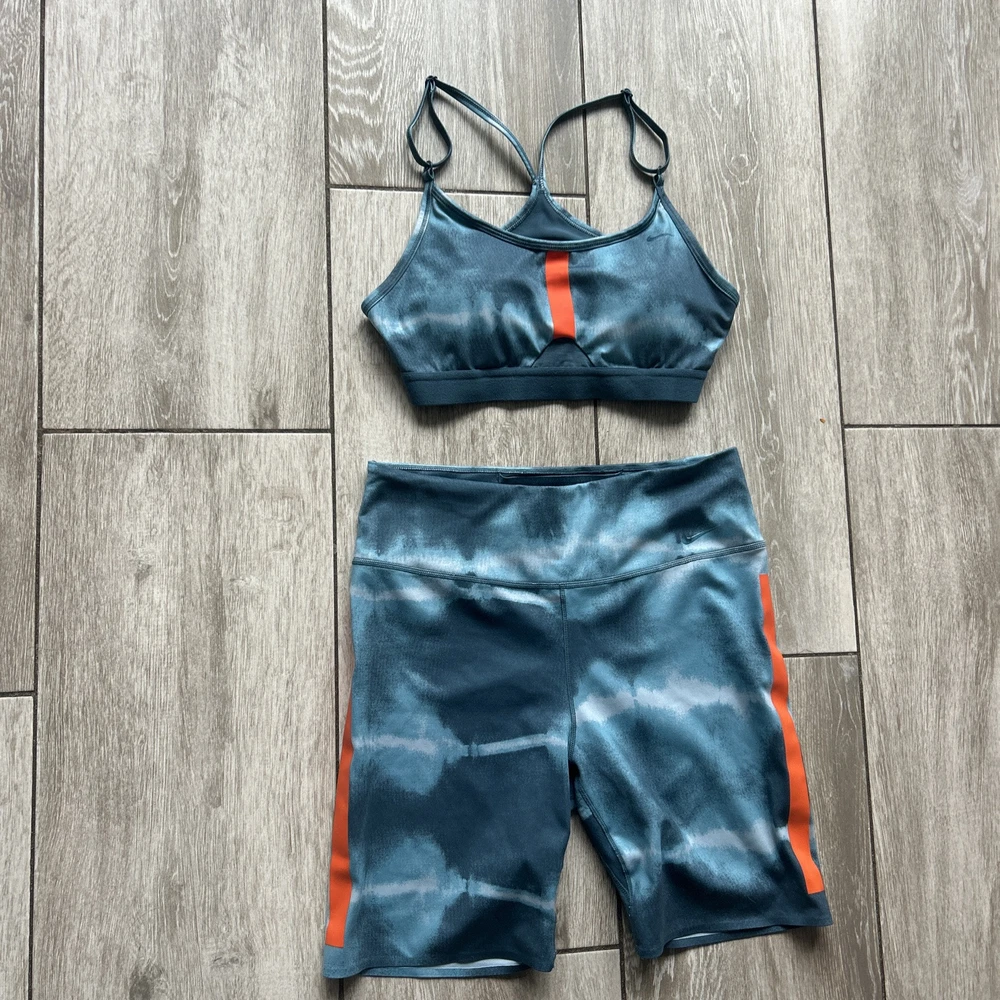 Nike women’s athletic set Bra top with removable padding High waist Shorts Both in size medium Unique and sporty set! Preowned in great condition, refer to all photos