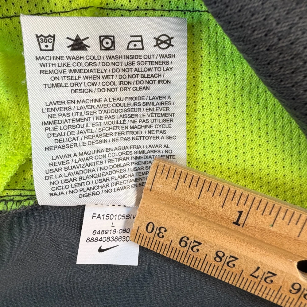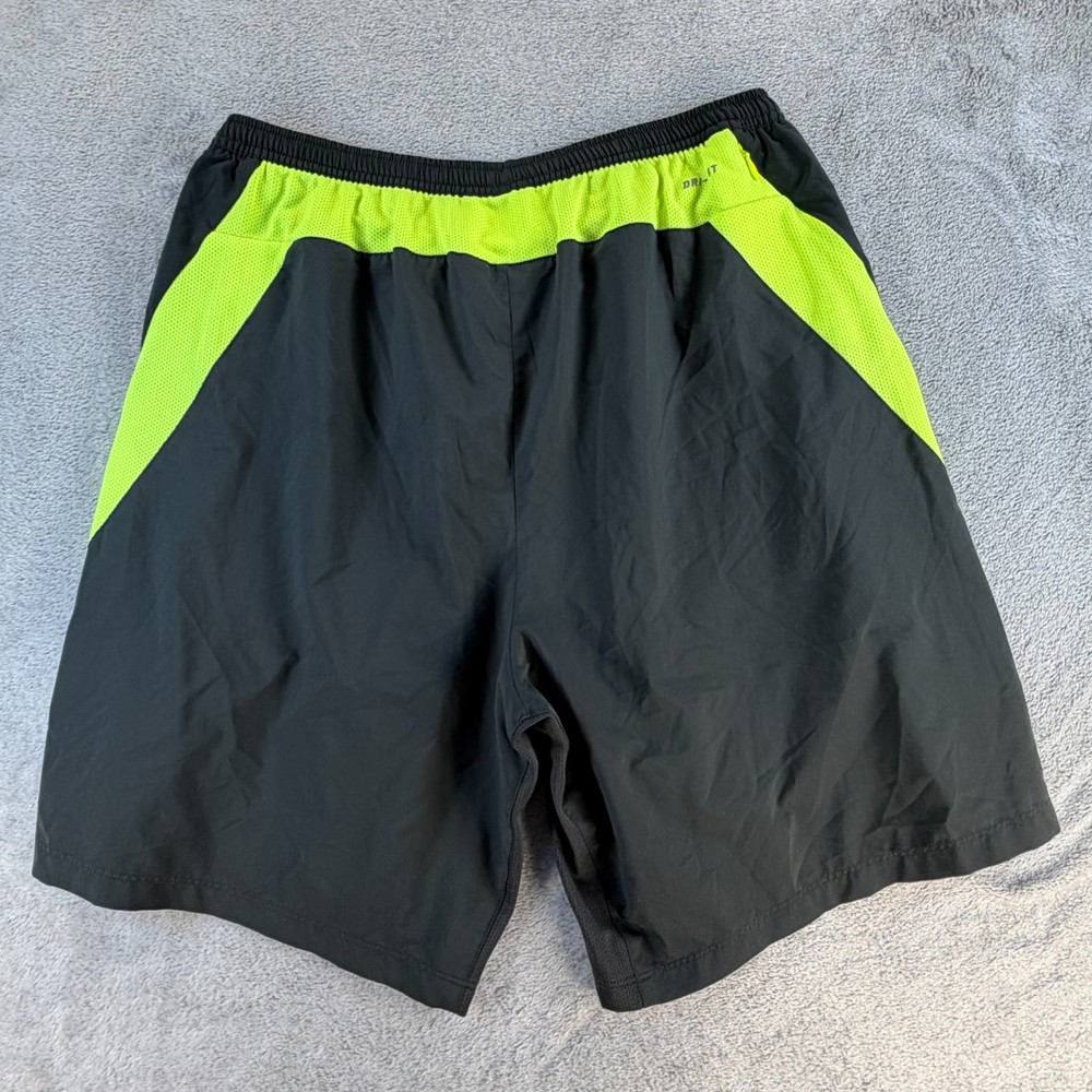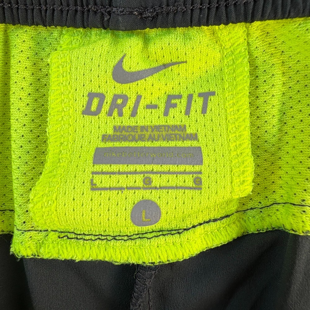 Nike Dri-FIT Performance Running Shorts Lightweight athletic shorts designed for breathability, movement, and moisture control. Details: Brand: Nike Size: Men’s Large Color: Black with neon green mesh panels Material: 100% Polyester Dri-FIT moisture-wicking technology Elastic waistband Mesh side panels for ventilation Reflective Nike Swoosh Lightweight running / training design Made in Vietnam Measurements: Please see included photos for measurements. Classic Nike performance shorts with high-visibility mesh panels — ideal for running, training, gym workouts, or warm-weather activity. 💛 Thanks for supporting our small family business!