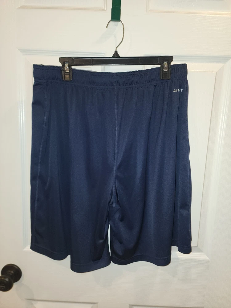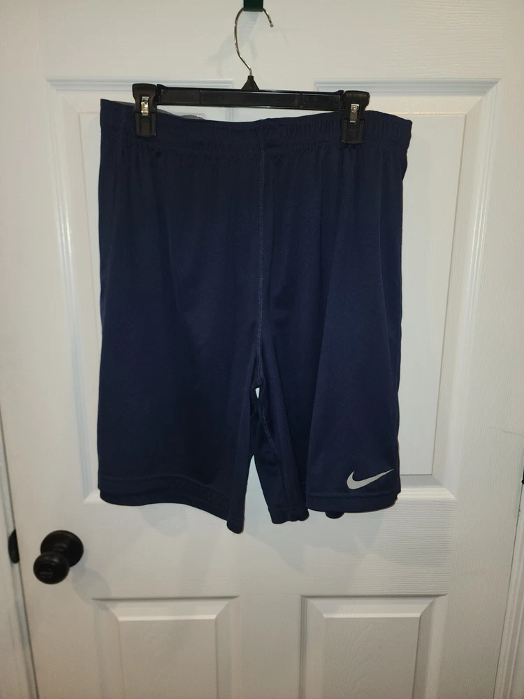 Elevate your workout game with these Nike Dri-FIT Men's Training Shorts in navy blue. The elastic waistband with drawstring closure ensures a comfortable and secure fit, while the breathable and lightweight material keeps you cool and dry during intense workouts. These shorts also feature pockets for added convenience. Perfect for basketball and other athletic activities, these shorts are a must-have for any fitness enthusiast. Made with polyester and manufactured in Vietnam, these shorts are designed to last and withstand the rigors of daily use.