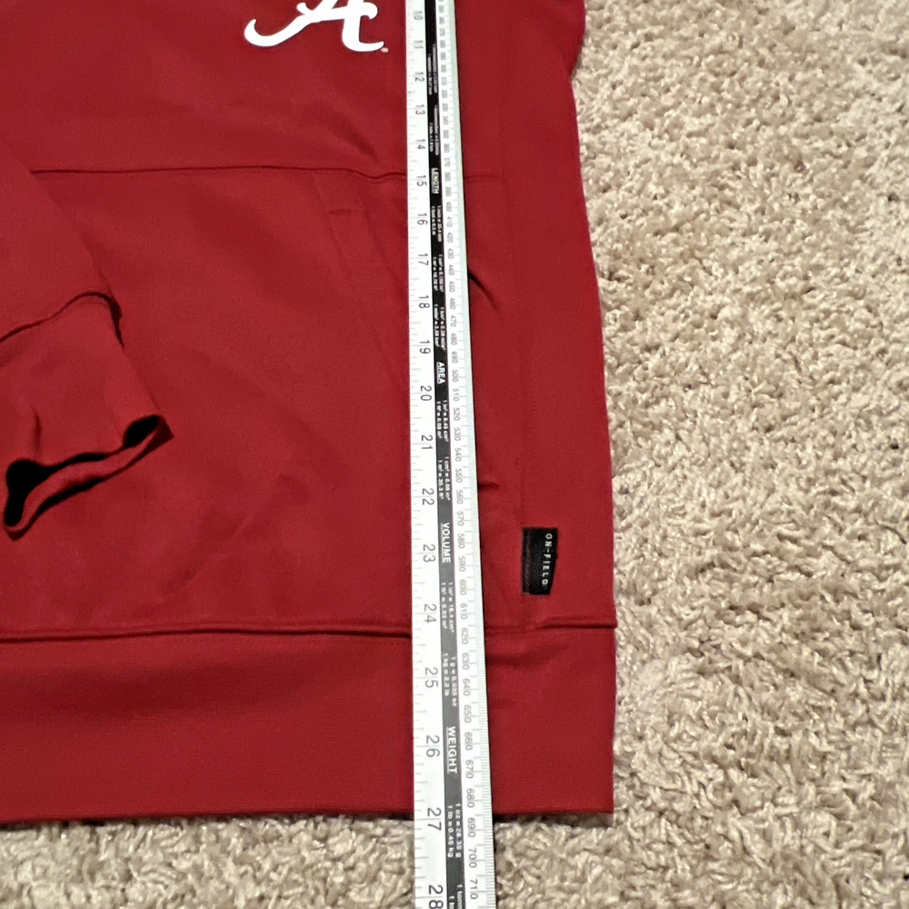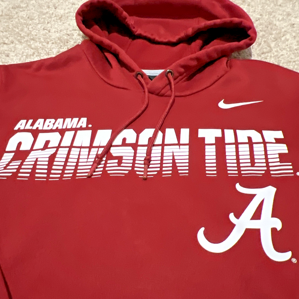 Nike Dri-FIT On Field NCAA Alabama Crimson Tide Pullover Hoodie – Men’s Size Small Show your team pride with this official Nike On Field Alabama Crimson Tide pullover hoodie . Designed with Dri-FIT technology to keep you dry and comfortable, this sweatshirt is perfect for game day, workouts, or everyday wear. 🧥 Item Features: Brand: Nike Team: Alabama Crimson Tide Size: Men’s Small Color: Team crimson/red with official Alabama logos Material: Nike Dri-FIT moisture-wicking fabric (polyester blend) Style: Pullover sweatshirt hoodie Features: Embroidered/printed team logo Nike swoosh on chest Drawstring hood Kangaroo front pocket Condition: Gently pre-owned – excellent shape with no holes, stains, or significant wear 🎯 Perfect For: Alabama Crimson Tide fans NCAA football season Training, casual wear, or tailgating Collectors of official team gear 📦 Ships Fast & Securely 🧼 Clean, Smoke-Free Home 📸 Actual Item Pictured