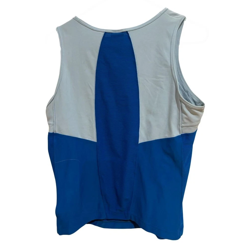 Stay cool, dry, and stylish during your workouts with the Nike Dri-FIT Performance Tank Top in a sleek blue and gray design. Designed for ultimate comfort and performance, this tank top features Nike's signature Dri-FIT technology to wick away sweat, keeping you comfortable and focused during any activity. Perfect for gym sessions, running, yoga, or casual wear, this tank is a versatile addition to your activewear collection. Key Features: Dri-FIT Technology: Keeps you cool and dry by wicking away moisture. Athletic Fit: Streamlined design for unrestricted movement. Versatile Styling: Ideal for high-performance workouts or casual outings. Durable Fabric: Made from a lightweight, breathable material for long-lasting wear. Stylish Color Combo: Blue and gray tones that pair easily with any workout gear. Specifications: Brand: Nike Color: Blue & Gray Material: Dri-FIT moisture-wicking fabric Size: L (Large) Style: Sleeveless performance tank top Condition: Pre-owned in excellent condition