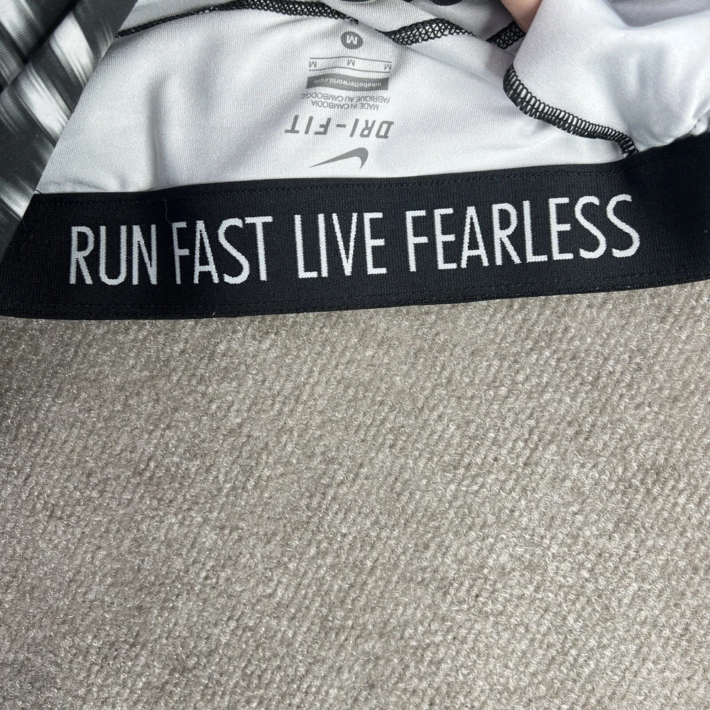 These leggings are super comfortable and perfect for running or workouts! The Dri-Fit material keeps you cool, and the fit is just right. Even though they're pre-owned, they're in great condition—just as described. Love the stylish black print, and the seller ships fast! Highly recommend for active women.
