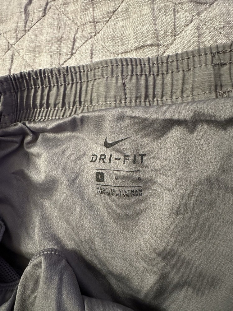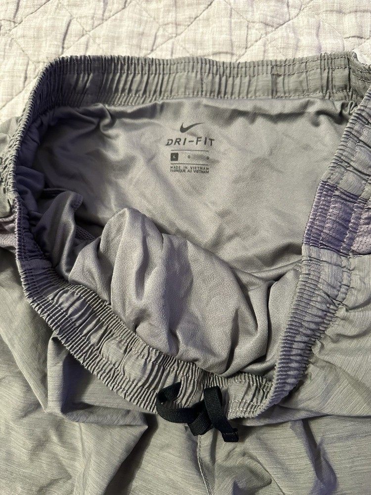 The Nike Dri-FIT Running Shorts for women in size Large are a stylish and functional choice for athletic activities like running and training. The gray color and solid pattern make them versatile for various occasions, while the drawstring closure and elastic waist provide a comfortable and secure fit. Made with lightweight and breathable material, these shorts are perfect for summer and spring seasons, helping you stay cool and comfortable during your workouts. The Nike Dri-FIT technology ensures moisture-wicking performance, making these shorts a practical and fashionable addition to your activewear collection.