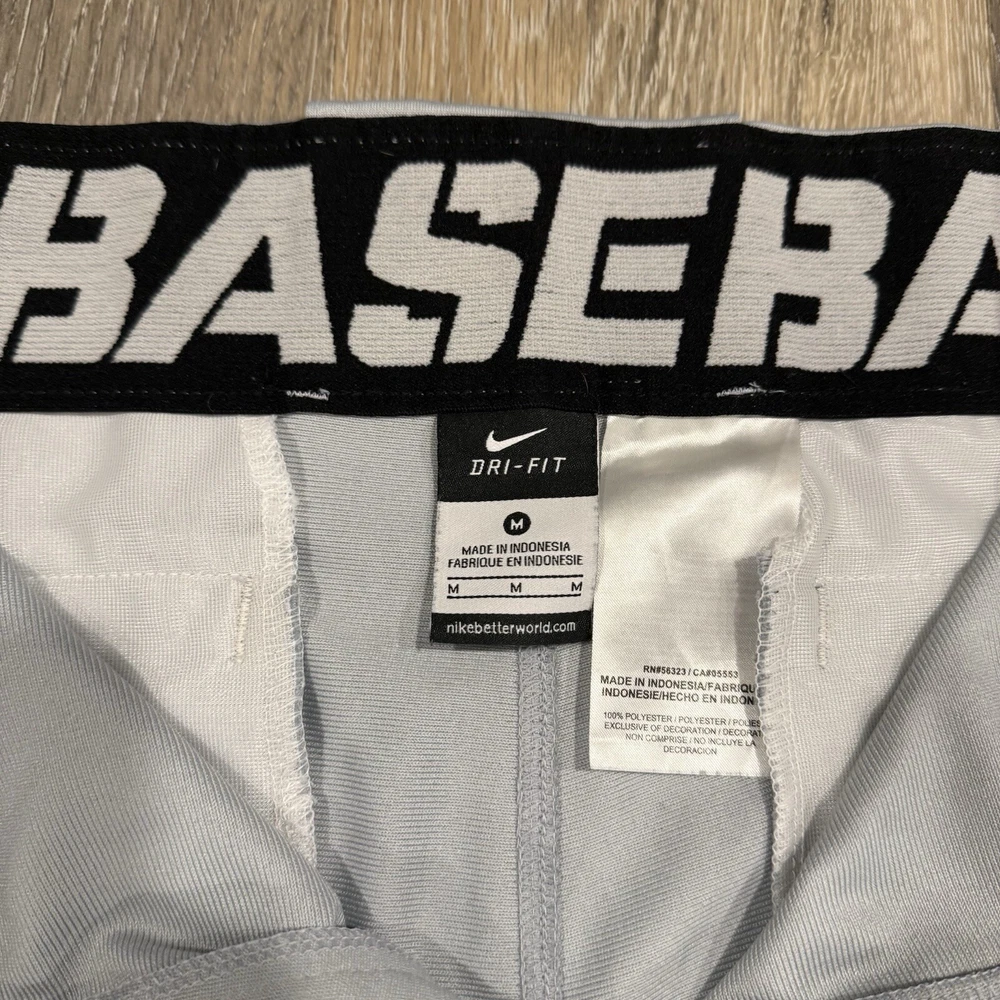 Brand: Nike Theme: Sports Style: Baseball Occasion: Activewear Department: Men Vintage: No Size: M Inseam: 31 in Color: Gray Material: Polyester Product Line: Nike Dri-FIT Closure: Pull On Fabric Type: Blended Fabric Size Type: Regular Waist Size: 32 in Features: Comfort, Pockets Fit: Athletic Country/Region of Manufacture: Indonesia Season: Winter, Spring, Fall, Summer Type: Pants Performance/Activity: Baseball