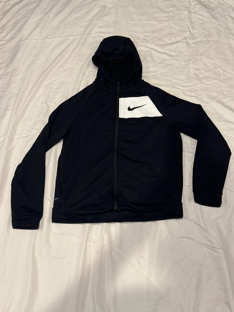 Boys Large Nike Dri-Fit Zip-up Hooded Jacket Fleece Lined Worn OnceBlack/White
