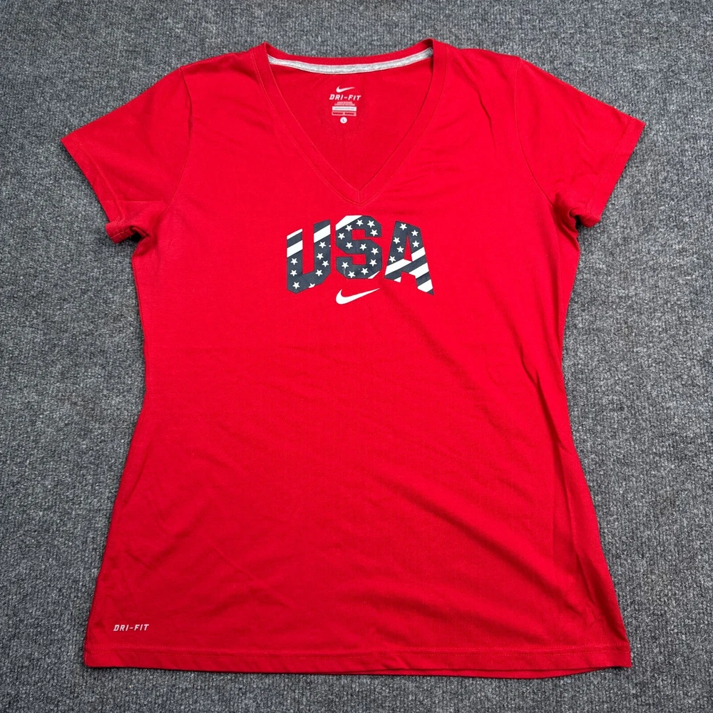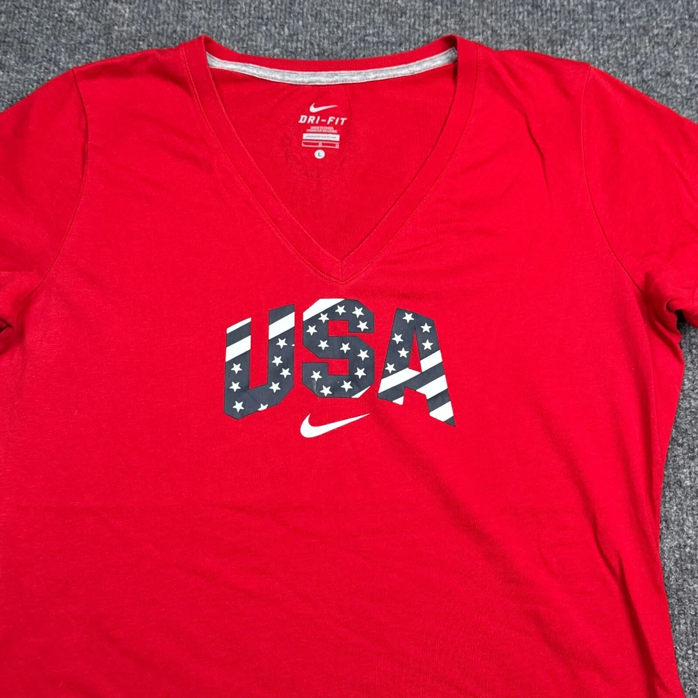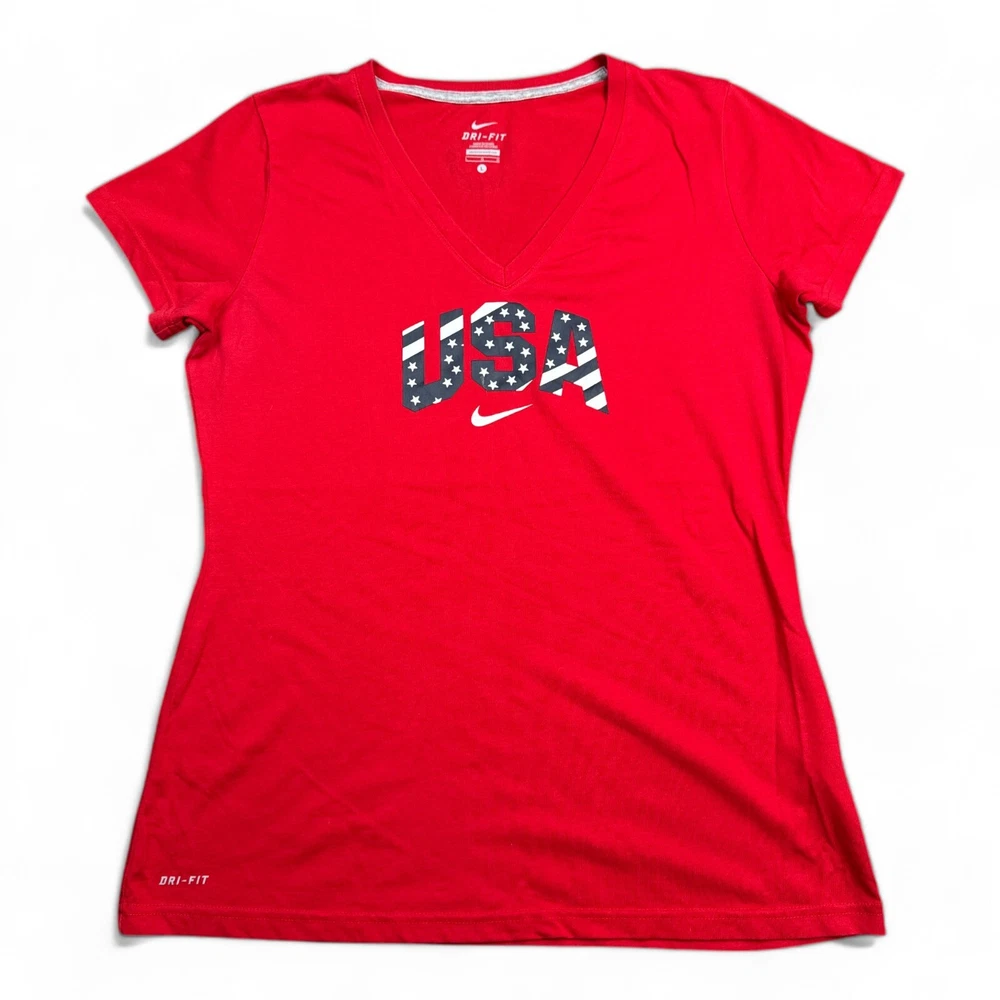 Nike Dri-Fit Olympic Team USA Tee Shirt Top Womens Size Large Red Athleisure