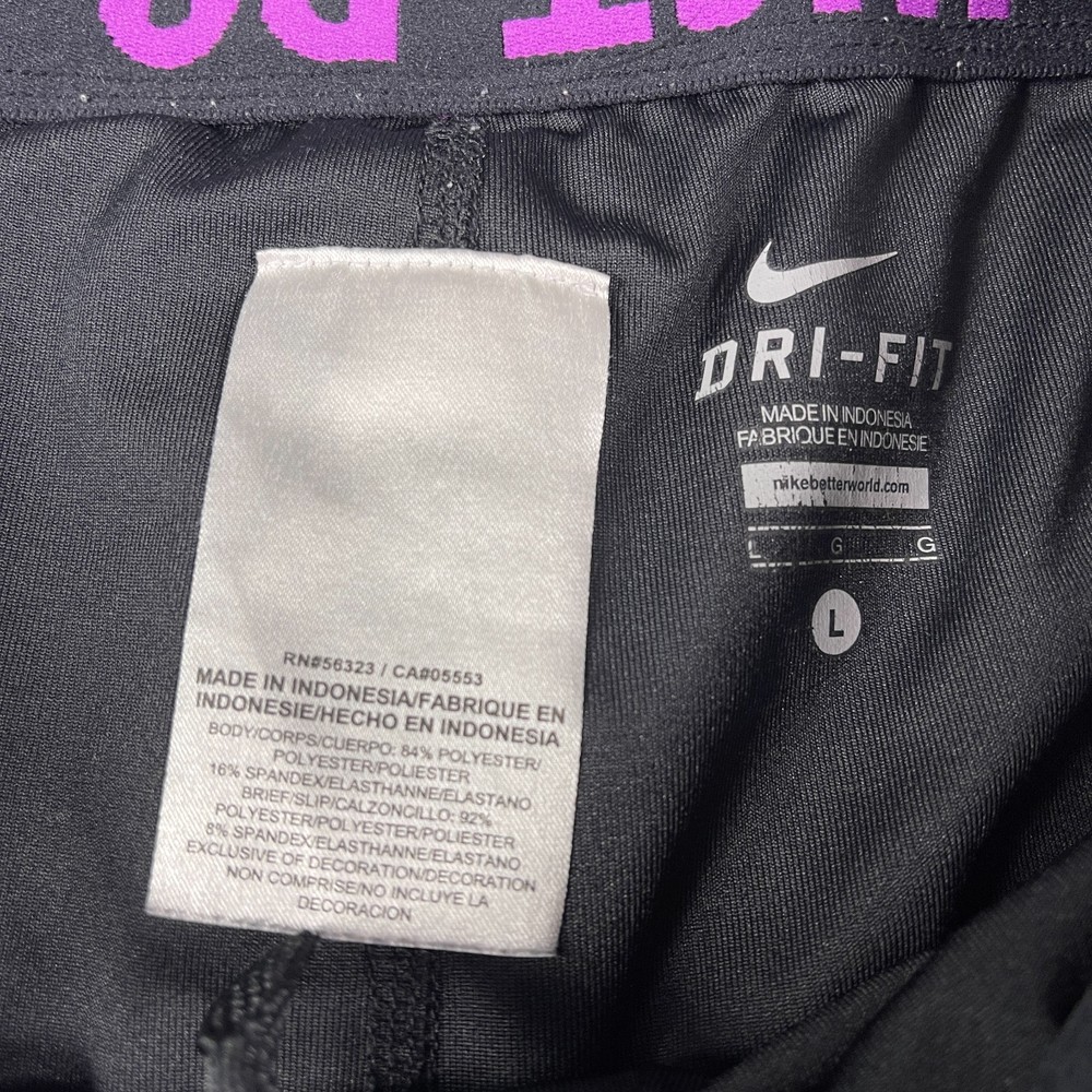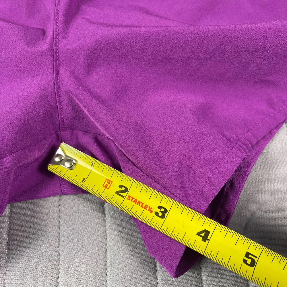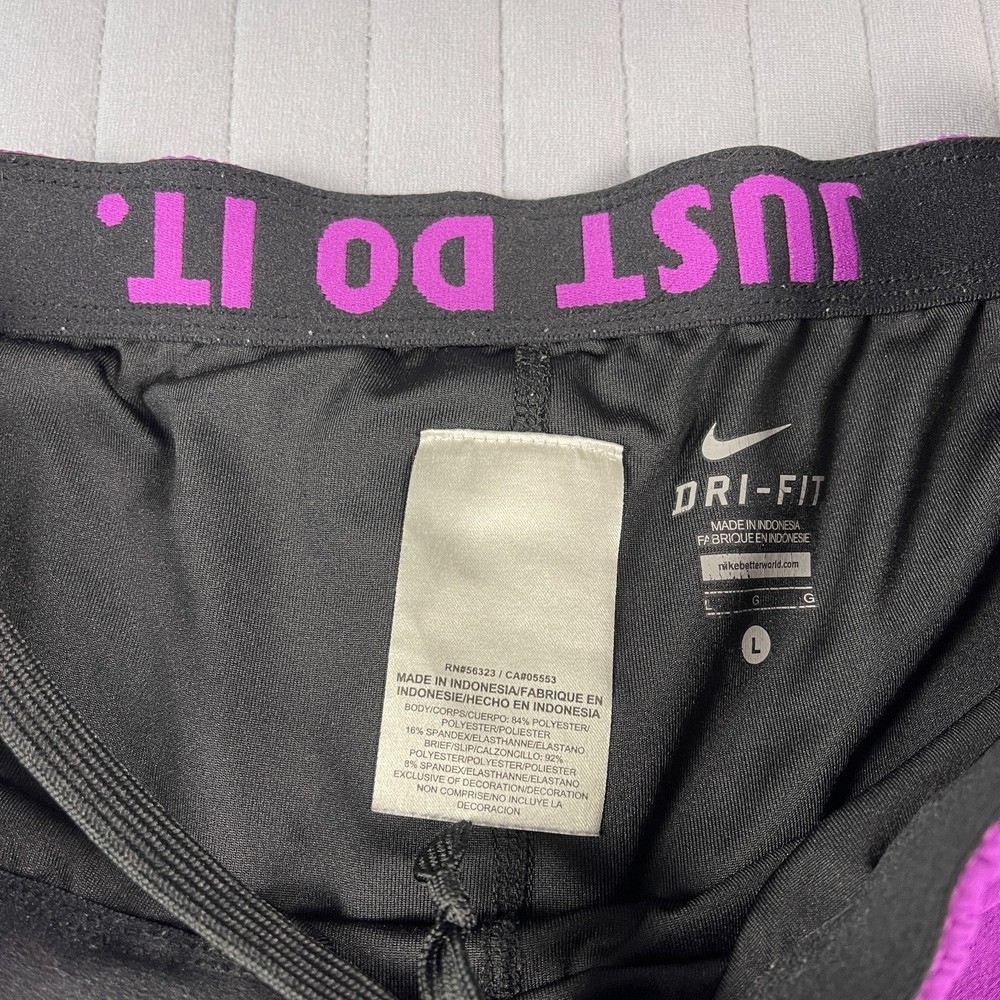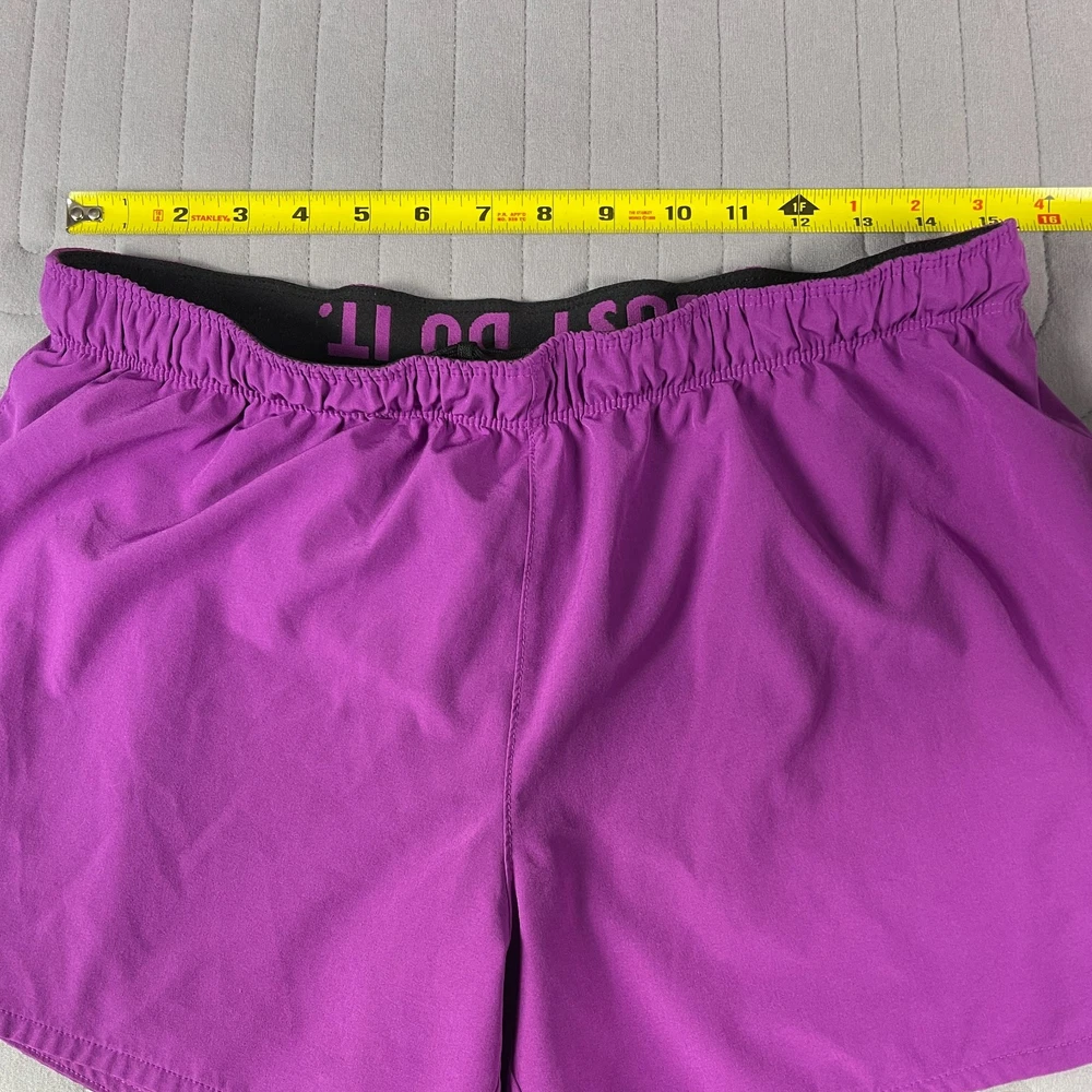 The Nike Dri-Fit Purple Running Shorts for women in size Large are designed for athletic activities, specifically running and jogging. Made of polyester with a solid purple color, these shorts feature a drawstring closure, lined interior, and stretch material for comfort and flexibility. The 3.5-inch inseam and athletic fit make them suitable for active women looking for supportive and stylish activewear for the summer, fall, and spring seasons. Machine washable for easy care, these Nike shorts are a great addition to any active wardrobe.